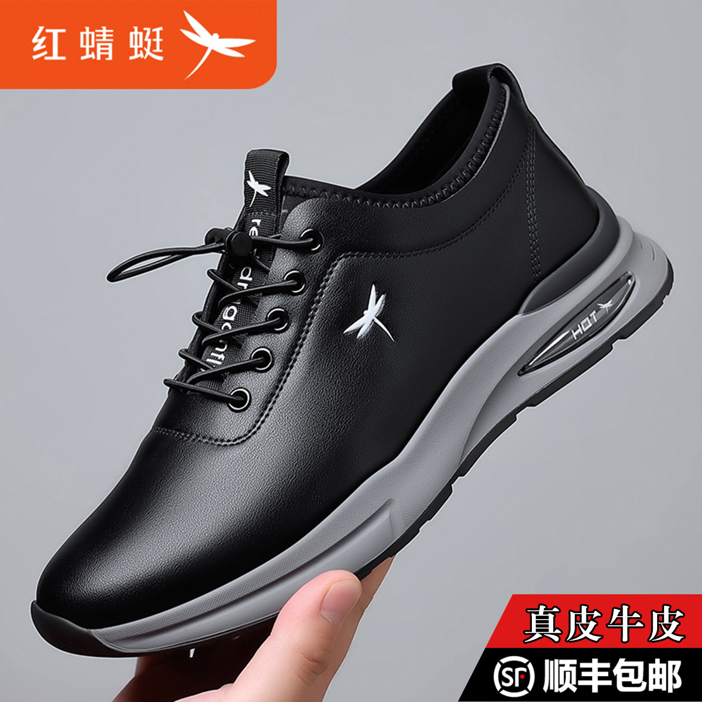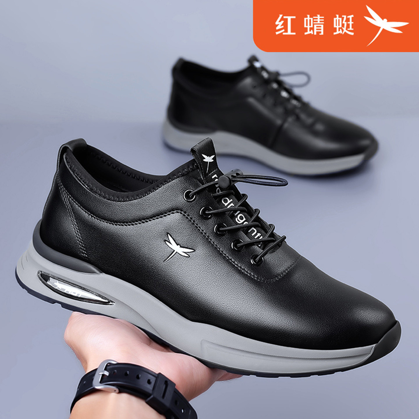 红蜻蜓男鞋真皮春季新款运动休闲鞋男士皮鞋透气时尚百搭小白鞋男