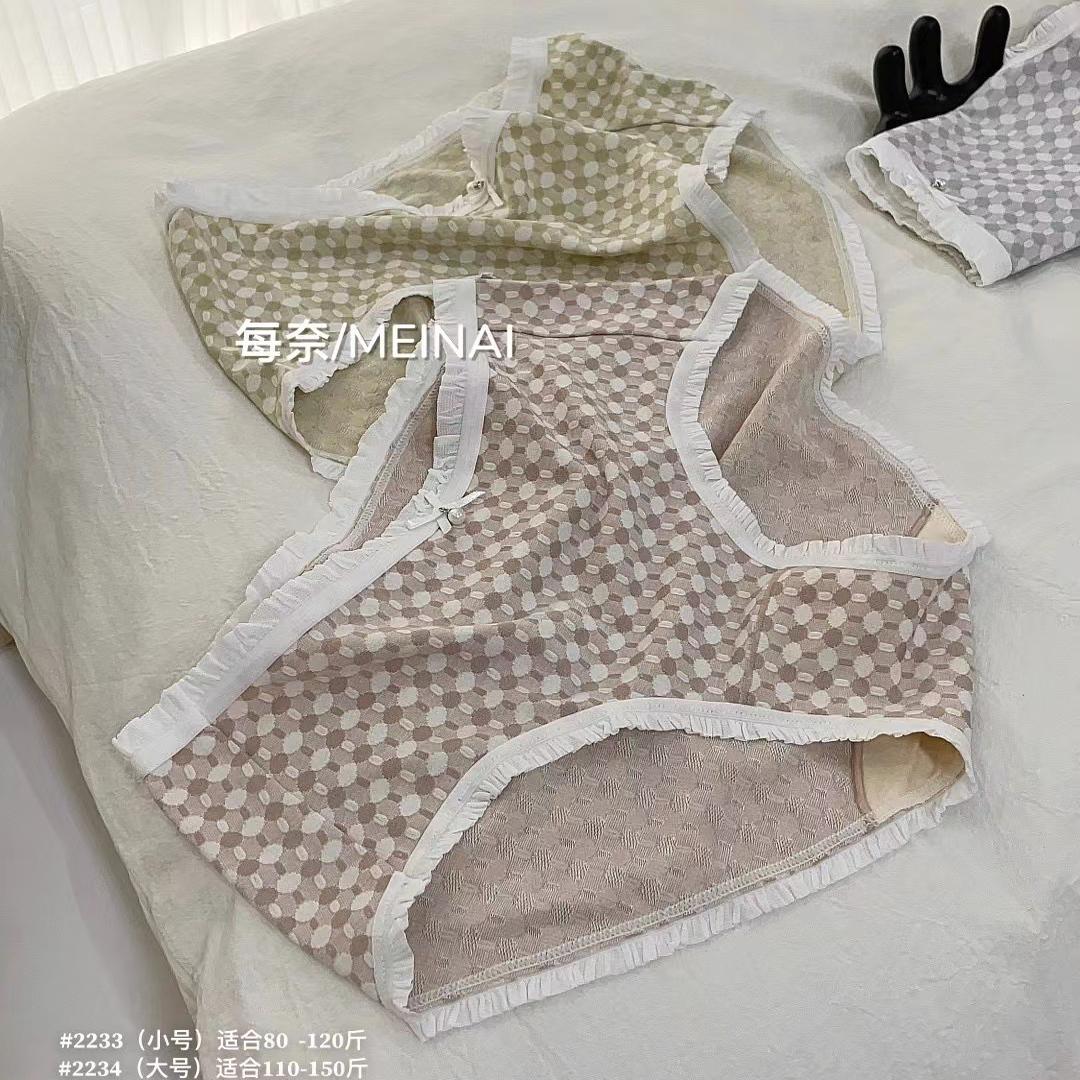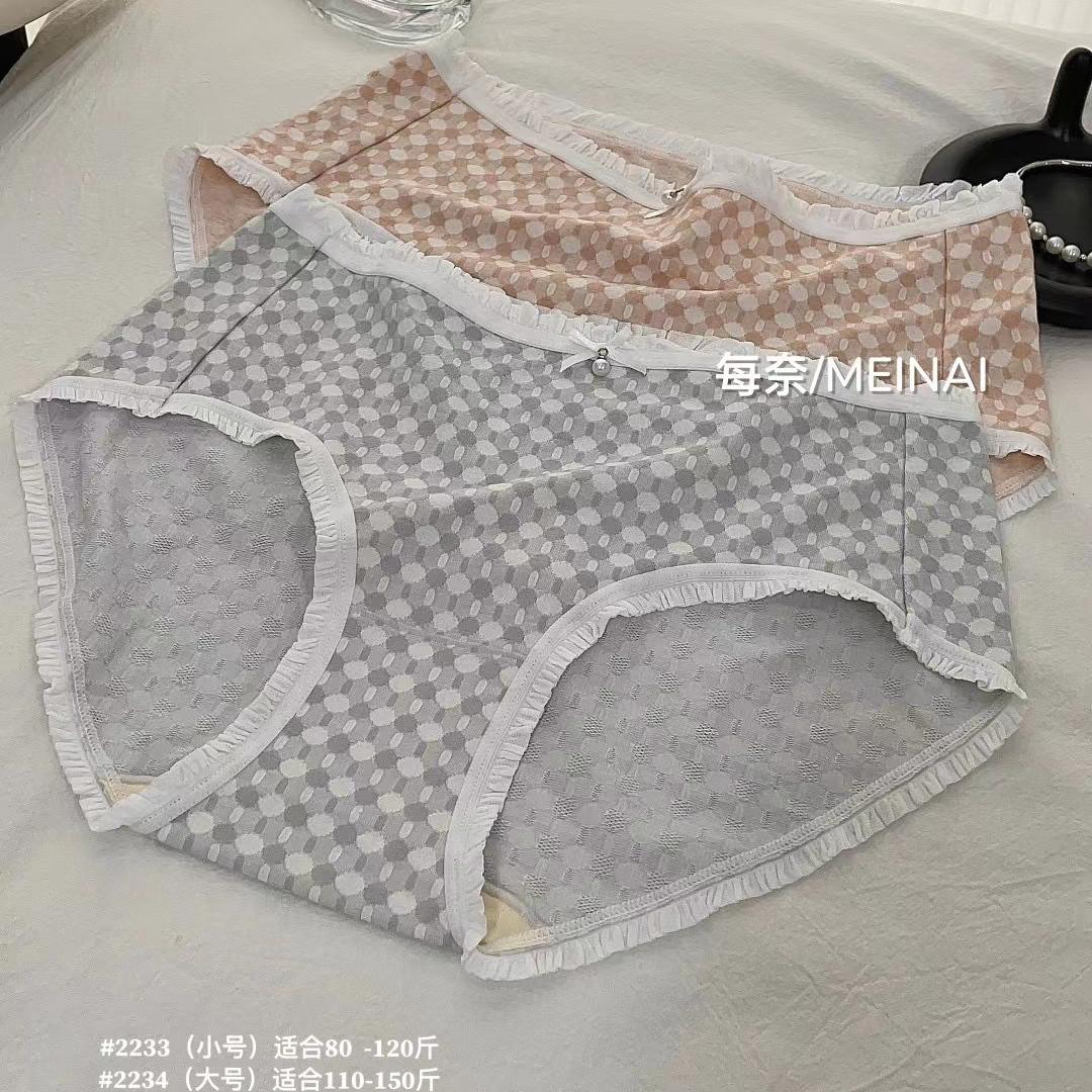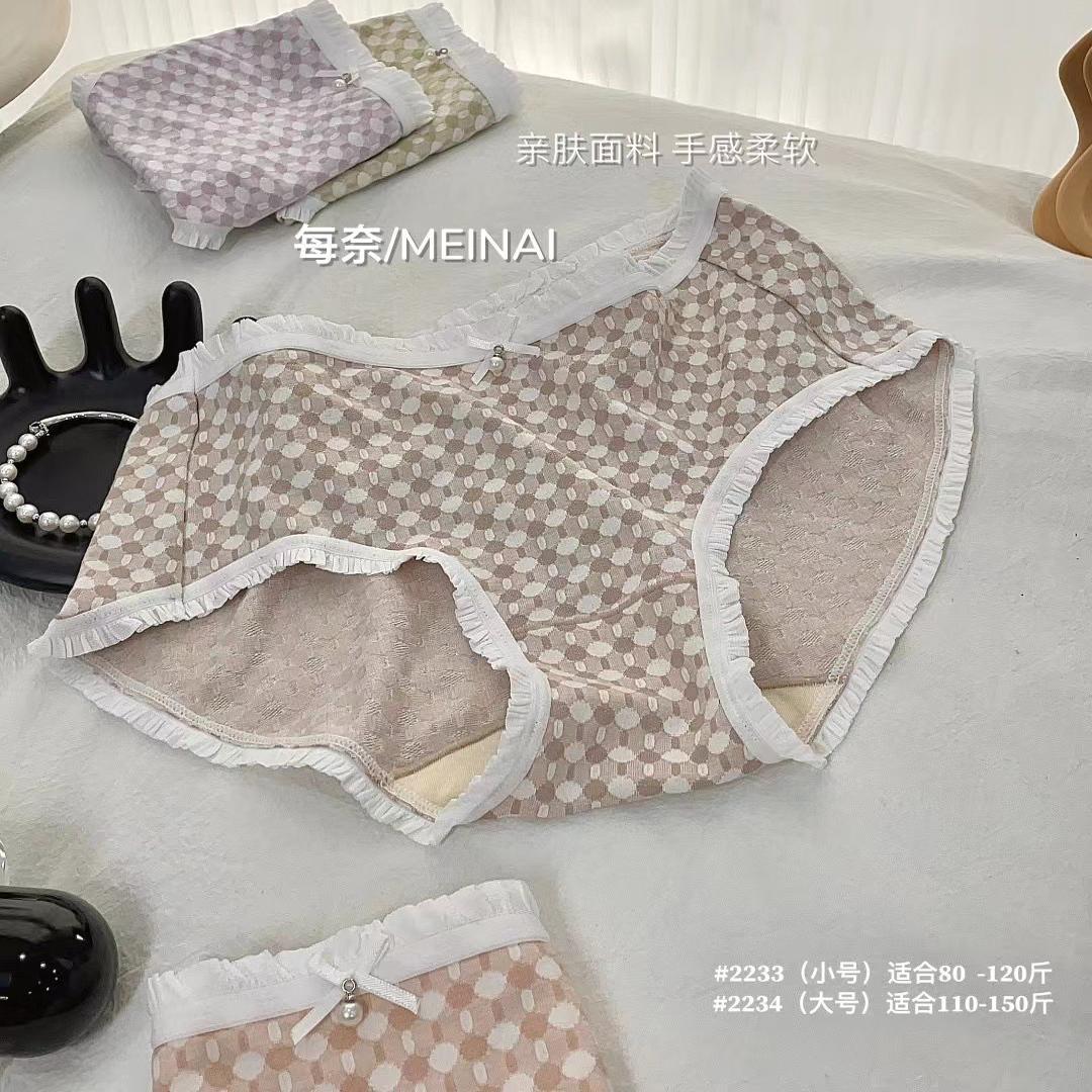 每奈女士内裤2234中腰无痕大码胖MM冰丝裸感透气包臀波点印花可爱