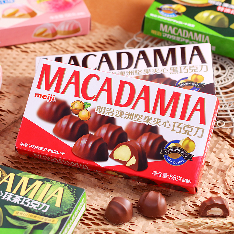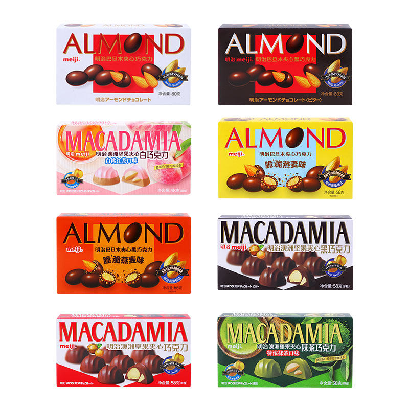 meiji明治澳洲坚果杏仁巧克力巴旦木夹心黑巧燕麦味糖果零食盒装
