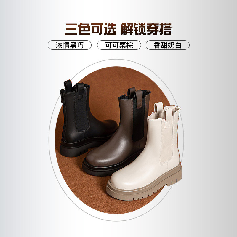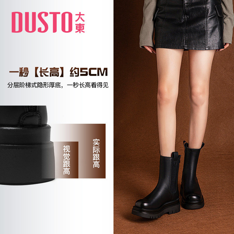大东女靴切尔西靴2025冬季新款厚底圆头英伦中筒靴小个子增高短靴
