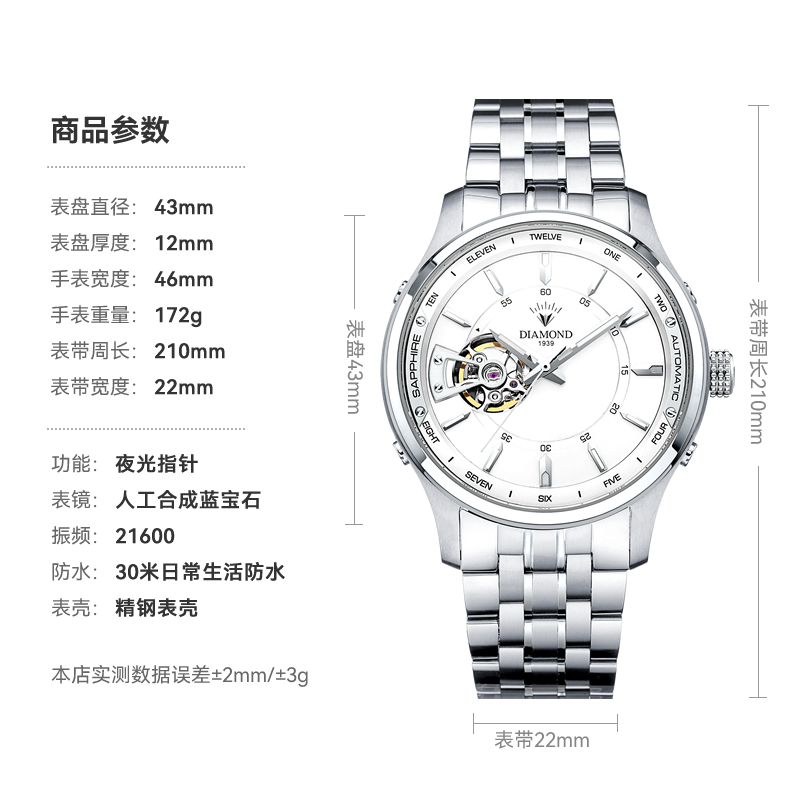 上海钻石手表男自动机械表防水时尚镂空3160官方正品男腕表漏摆
