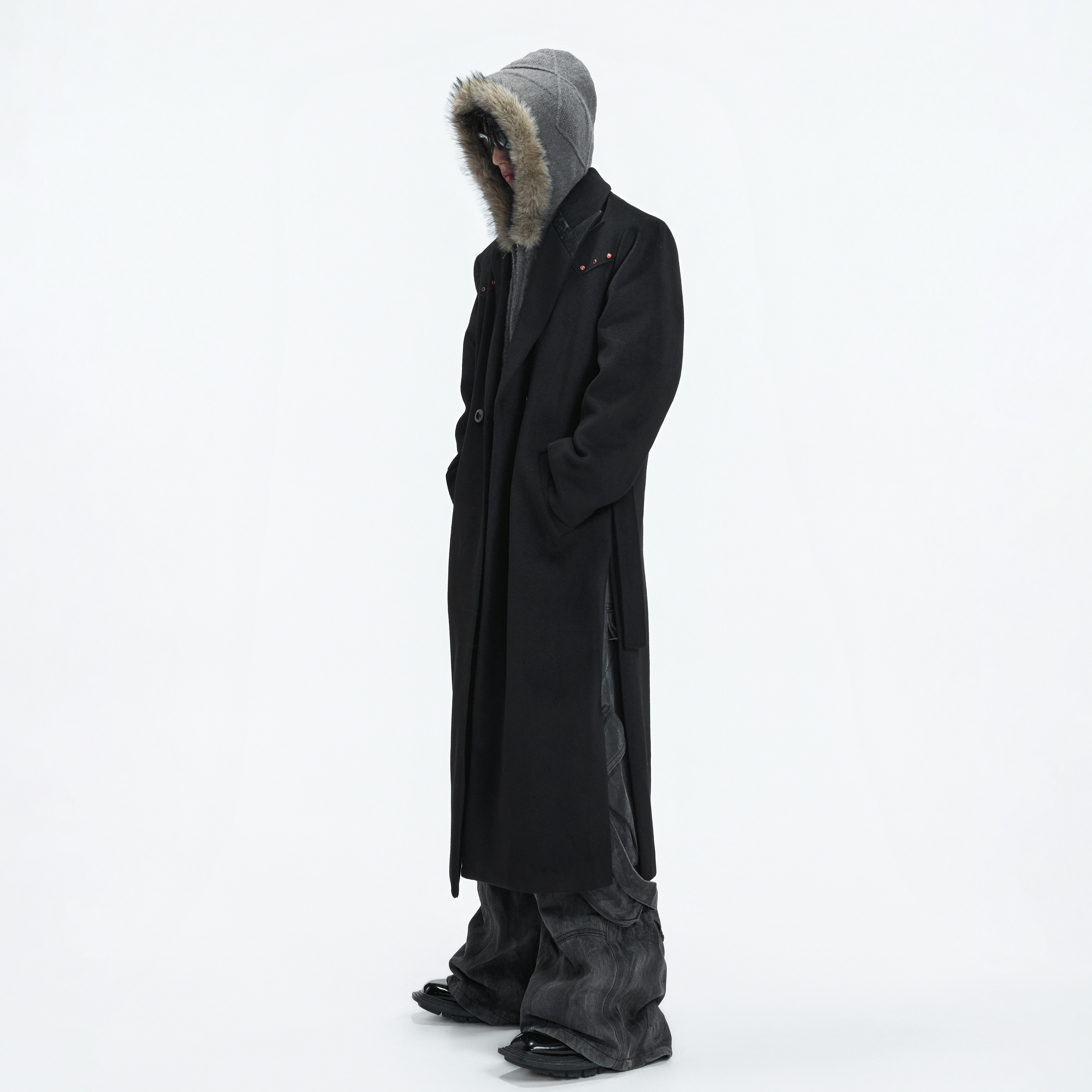 ArguE CulturE贵气红钻设计感廓形垫肩羊毛毛呢大衣长款高级外套