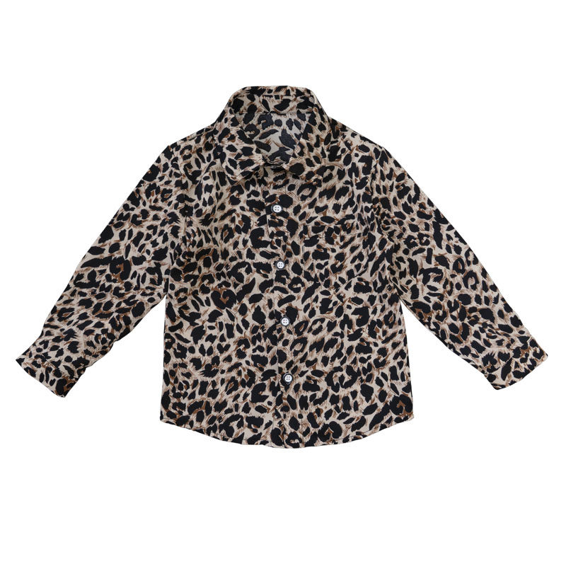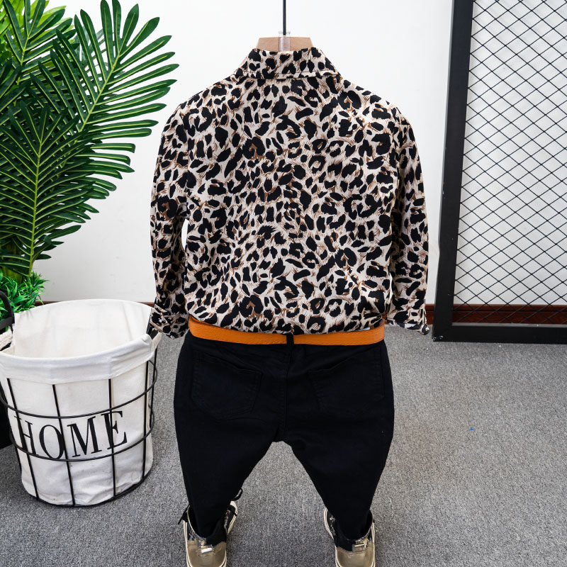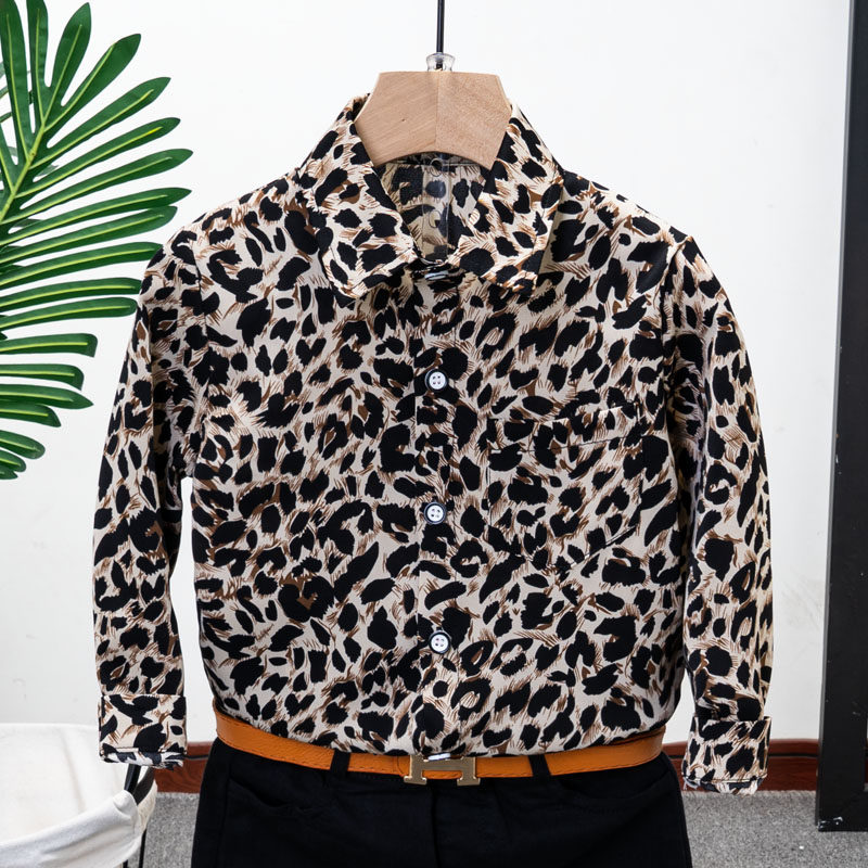 小男孩帅气百搭长袖豹纹衬衫
