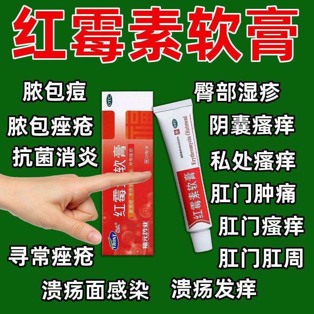 红霉素软膏药痔疮抗菌脓包痘私处止痒消肿溃面感染痤疮皮肤化脓药