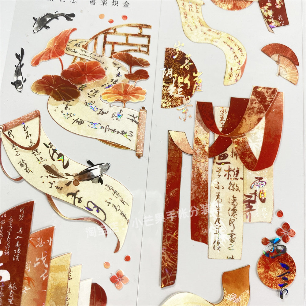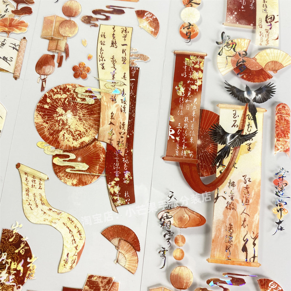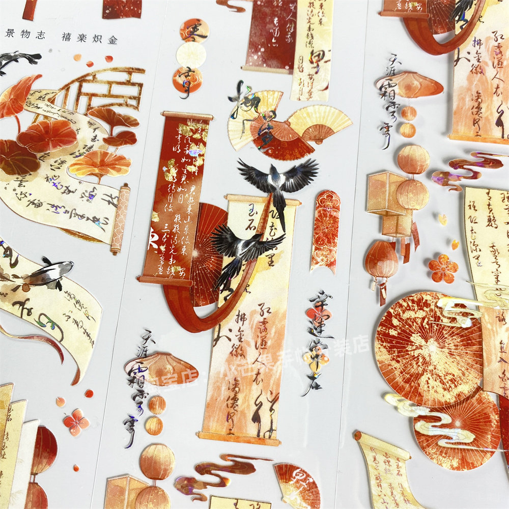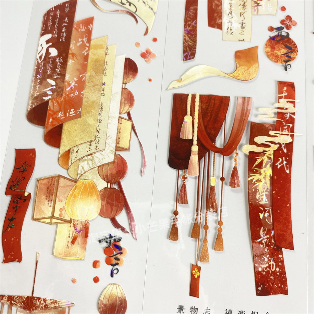 手帐分装胶带喜乐炽金zero红绸带灯笼节日古风PET素材账流麻贴纸