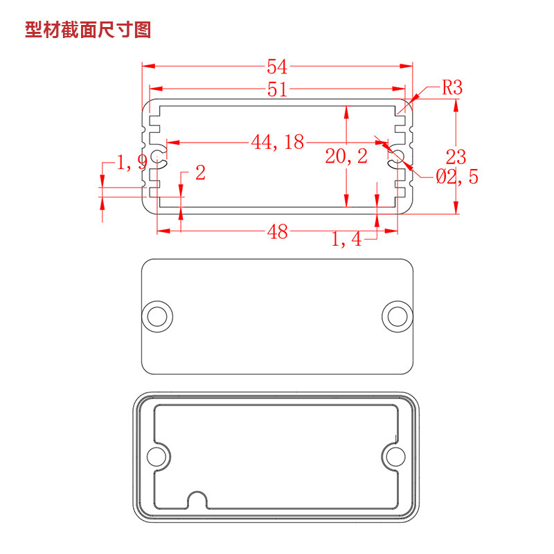 54*23铝合金充电宝外壳体电池塑料框金属铝型材gps接收控制器小盒