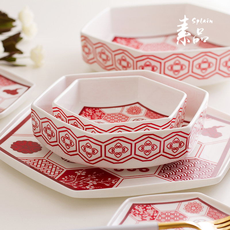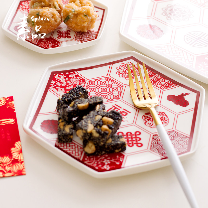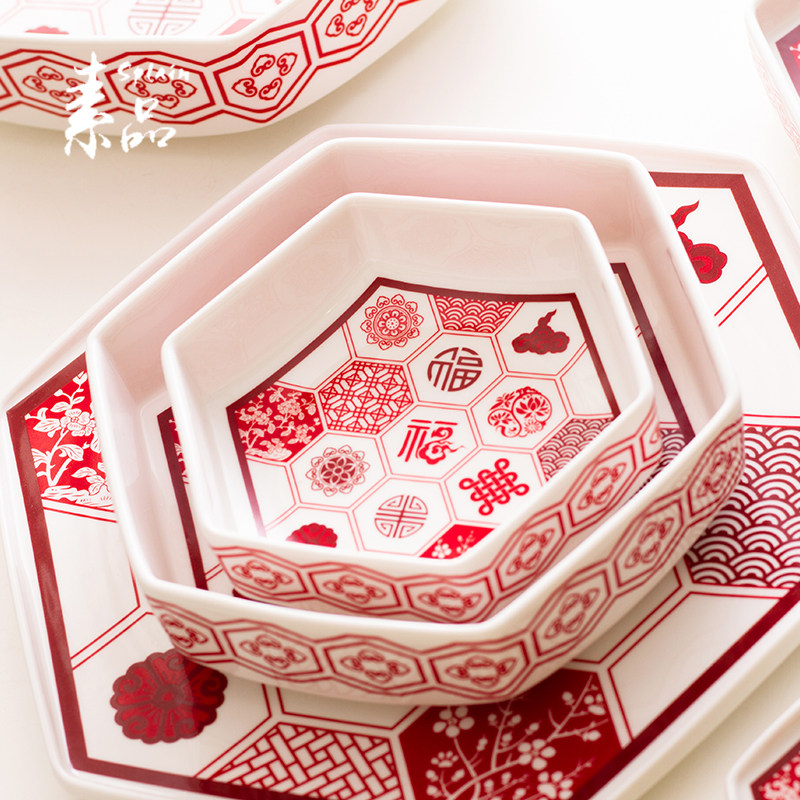 团圆婚庆小吃盘送礼陶瓷餐具