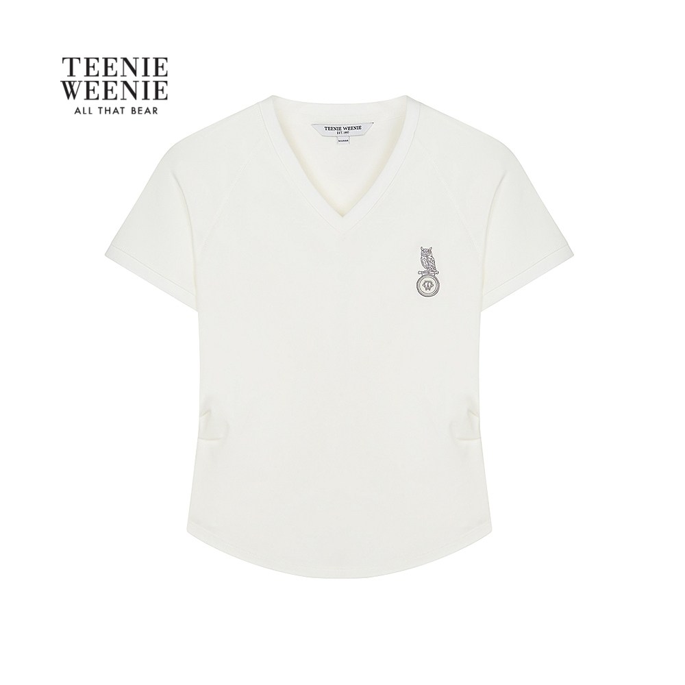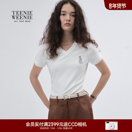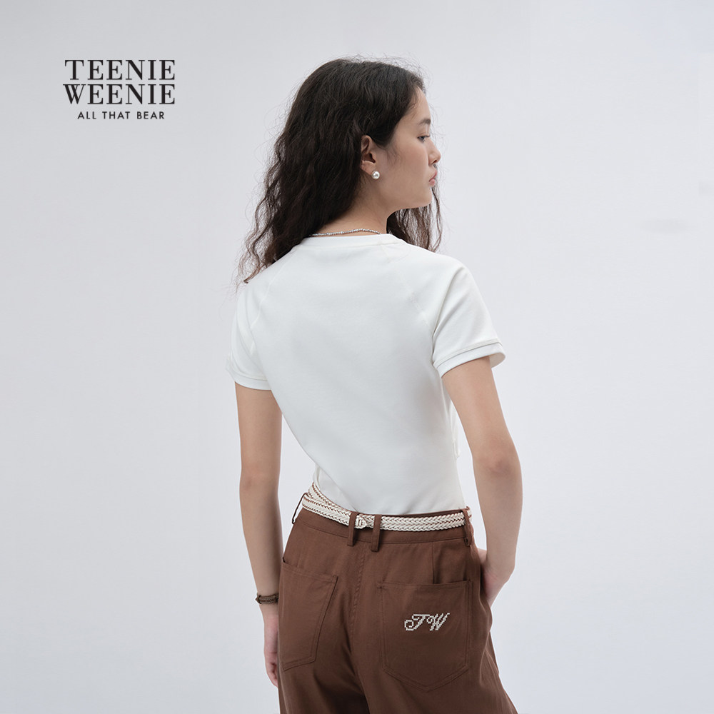 【液氨棉】TeenieWeenie小熊女装2025年秋新款V领短袖正肩修身T恤