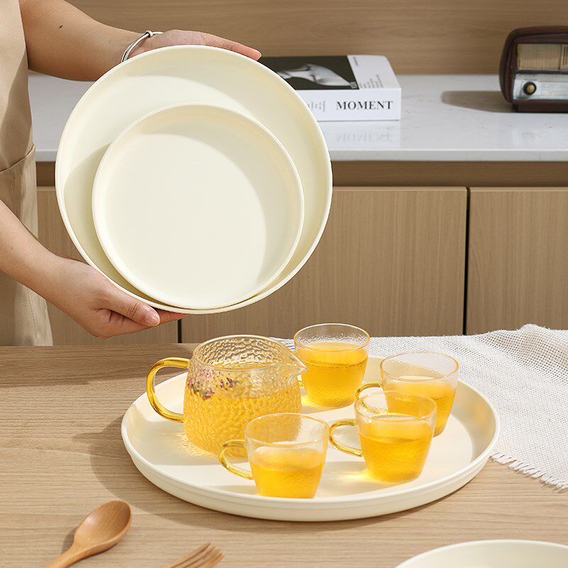 圆形奶油风商用托盘幼儿园寄餐园用餐盘收纳水杯茶杯面包水果盘子