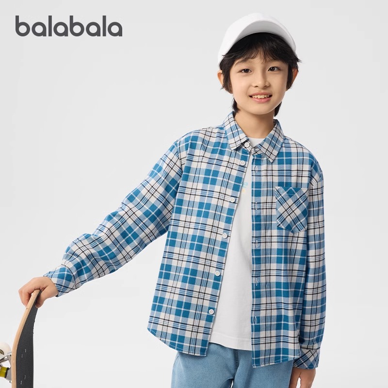 商场同款巴拉巴拉童装儿童格子衬衫女童男童上衣长袖秋装打底衫衣