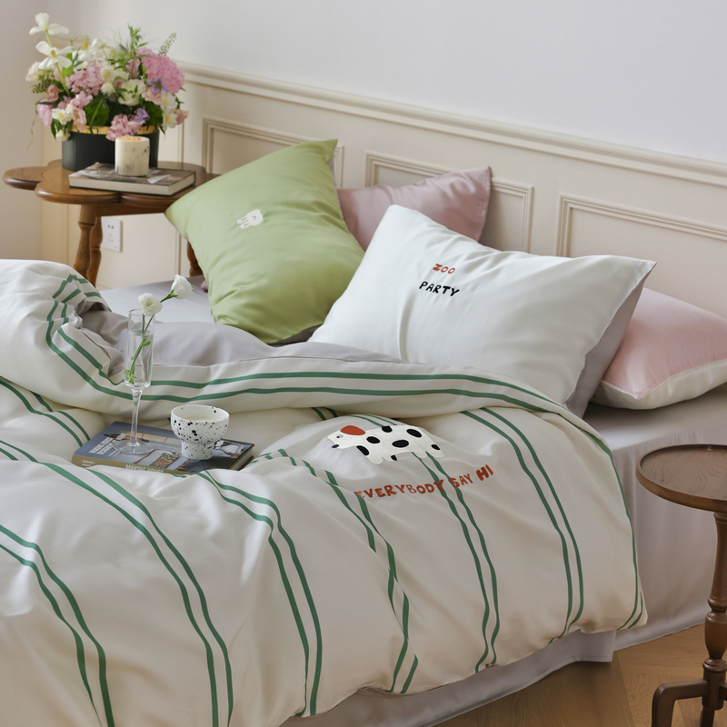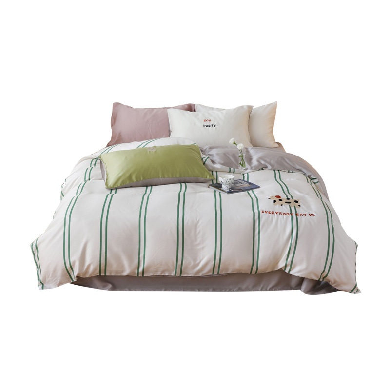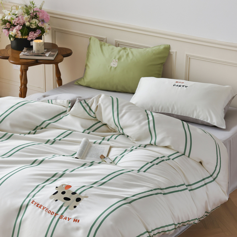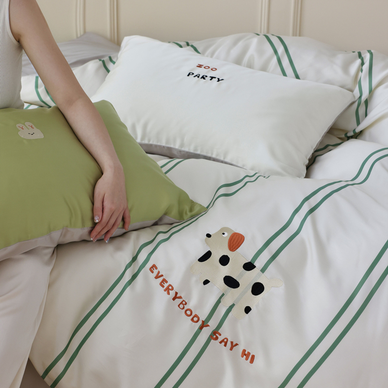 可爱卡通刺绣60支兰精天丝四件套夏季凉感冰丝裸睡丝滑床上用品