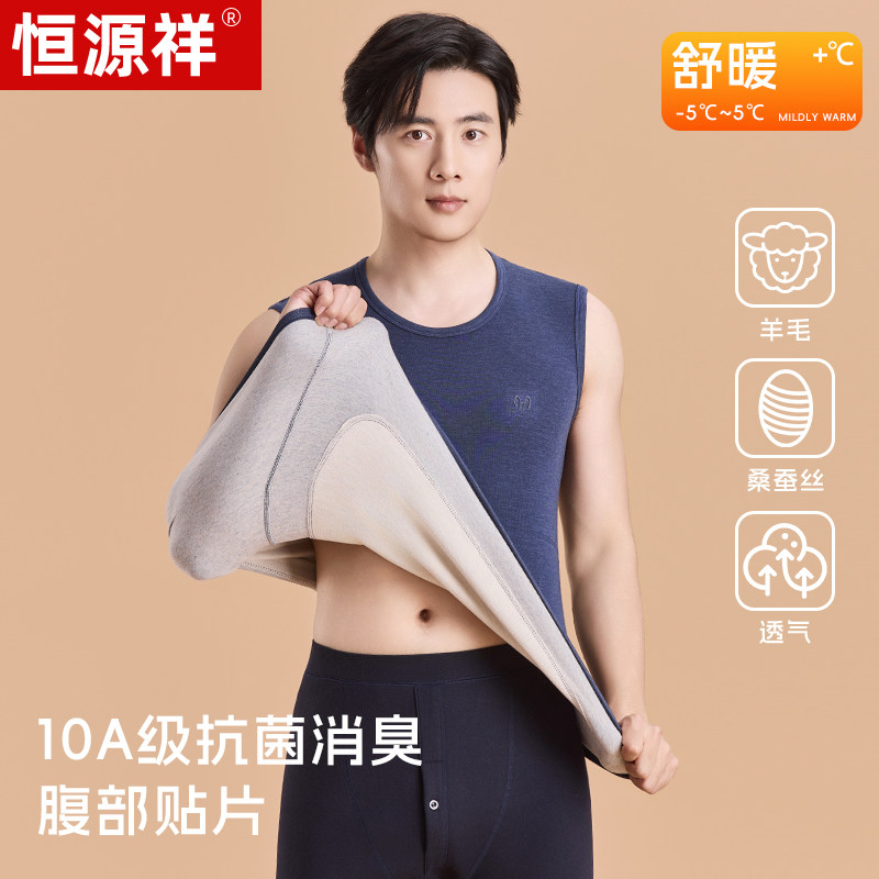 恒源祥男士羊绒蚕丝背心羊毛保暖衣坎肩无袖贴片打底衫秋冬季马甲