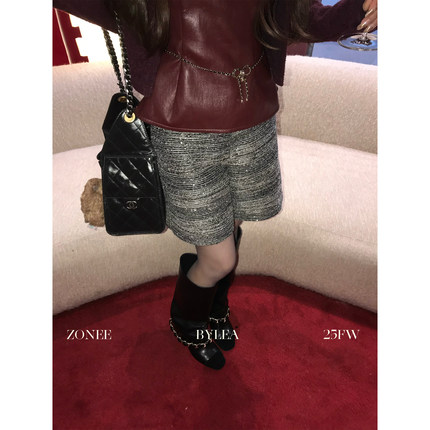 ZONEE/LEA宋亦雯 圣诞鎏金 法式精致时髦感粗花呢小香休闲短裤女