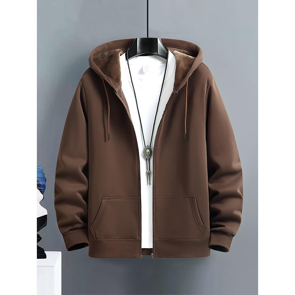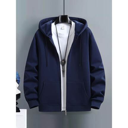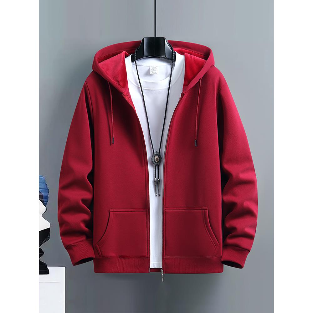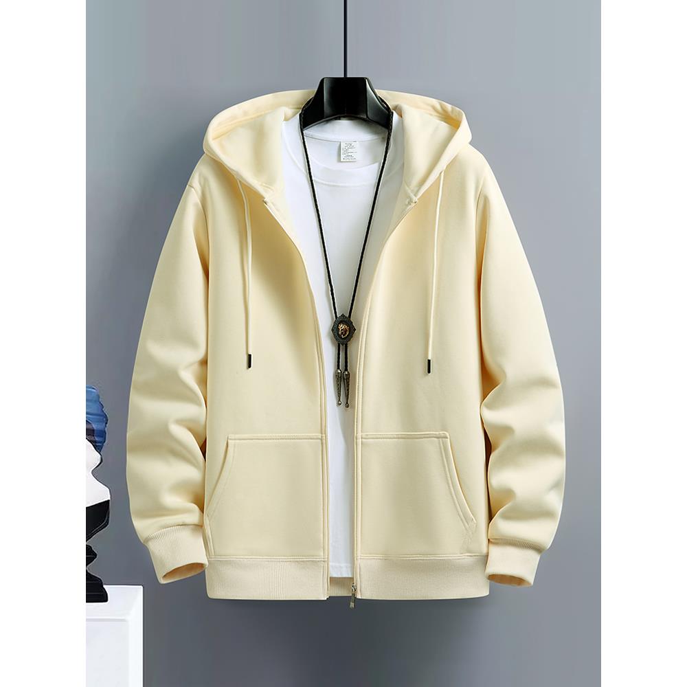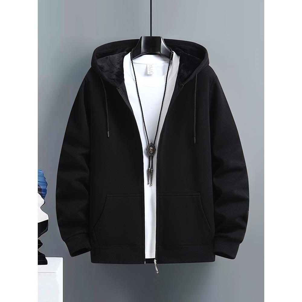 春秋新款开衫卫衣男纯色宽松大码加厚上衣青年百搭连帽加绒外套潮