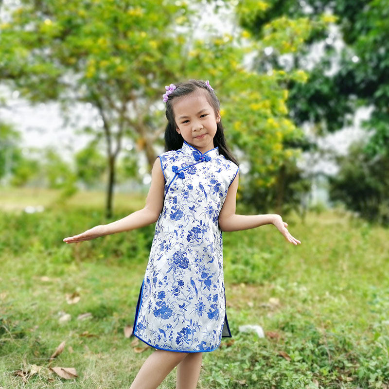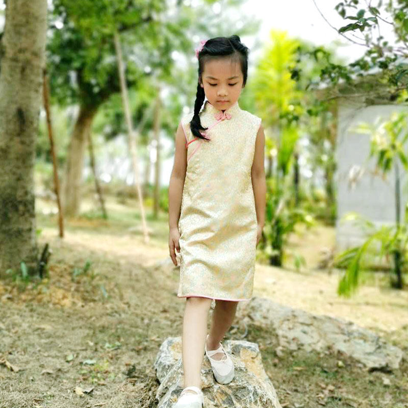 瑞蚨祥儿童旗袍女夏新款公主汉服国民风小女孩宝宝短袖唐装连衣裙