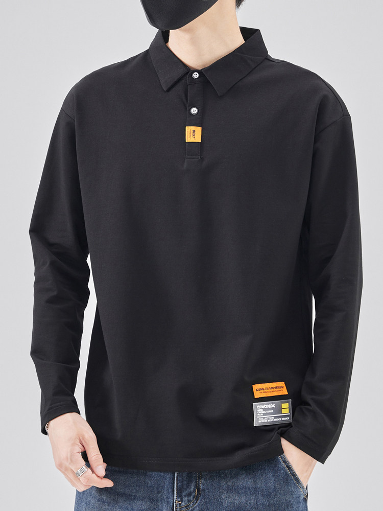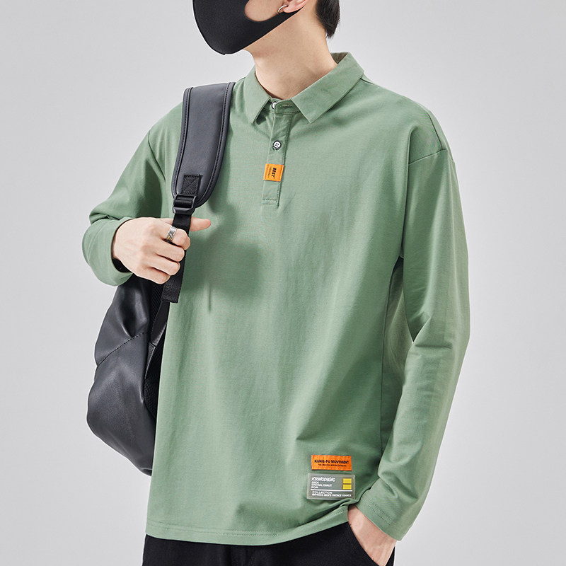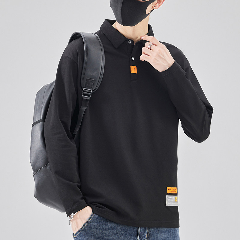 .春秋新款男士长袖翻领保罗POLO衫青年宽松有领子上衣轻商务T恤