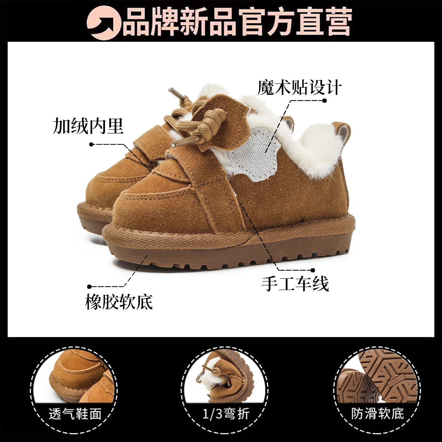 真皮宝宝婴童棉鞋2025冬季新款加厚保暖男童学步鞋加绒女童雪地靴