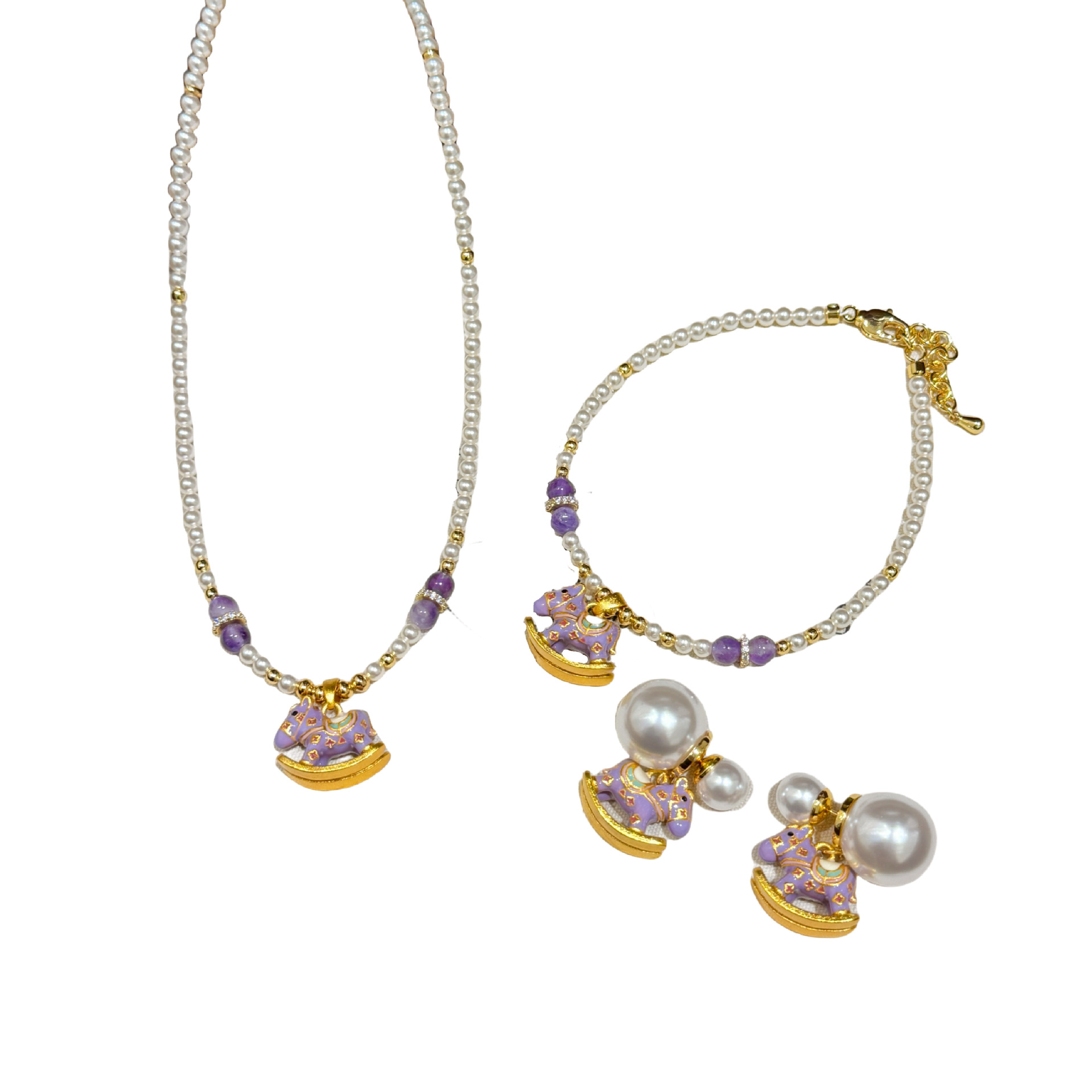 青岛黛美舒饰品滴油木马串珠珍珠项链配饰女轻奢小众高级感锁骨链
