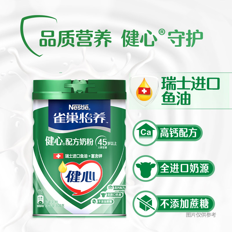 雀巢怡养健心鱼油高钙中老年营养奶粉800g罐装不添加蔗糖官方正品