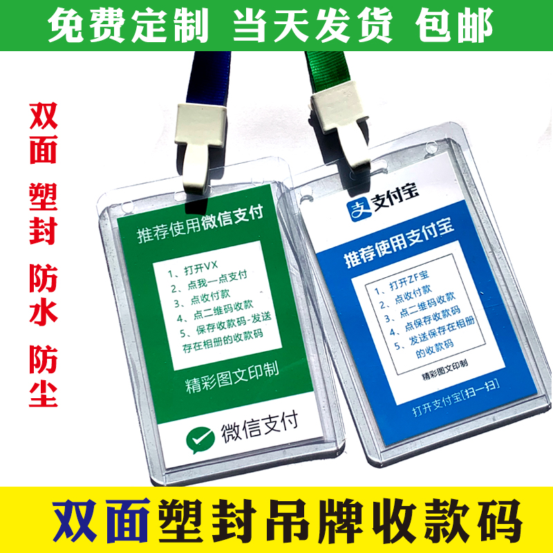 收款码吊牌挂绳卡套定做微信支付宝收钱码扫一扫双面高清塑封防水