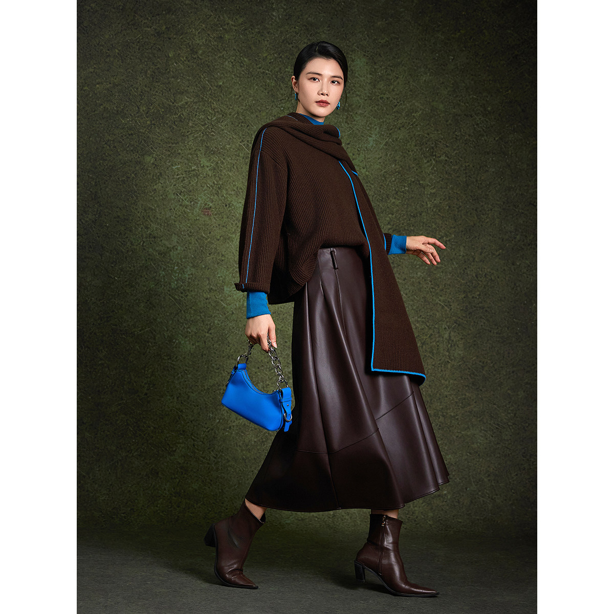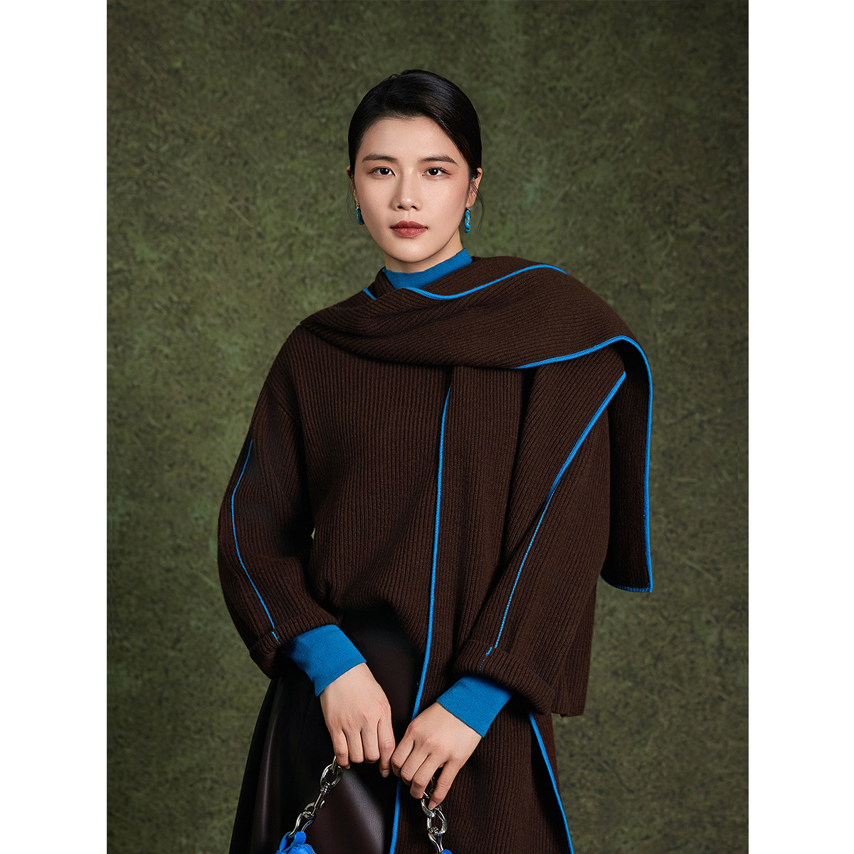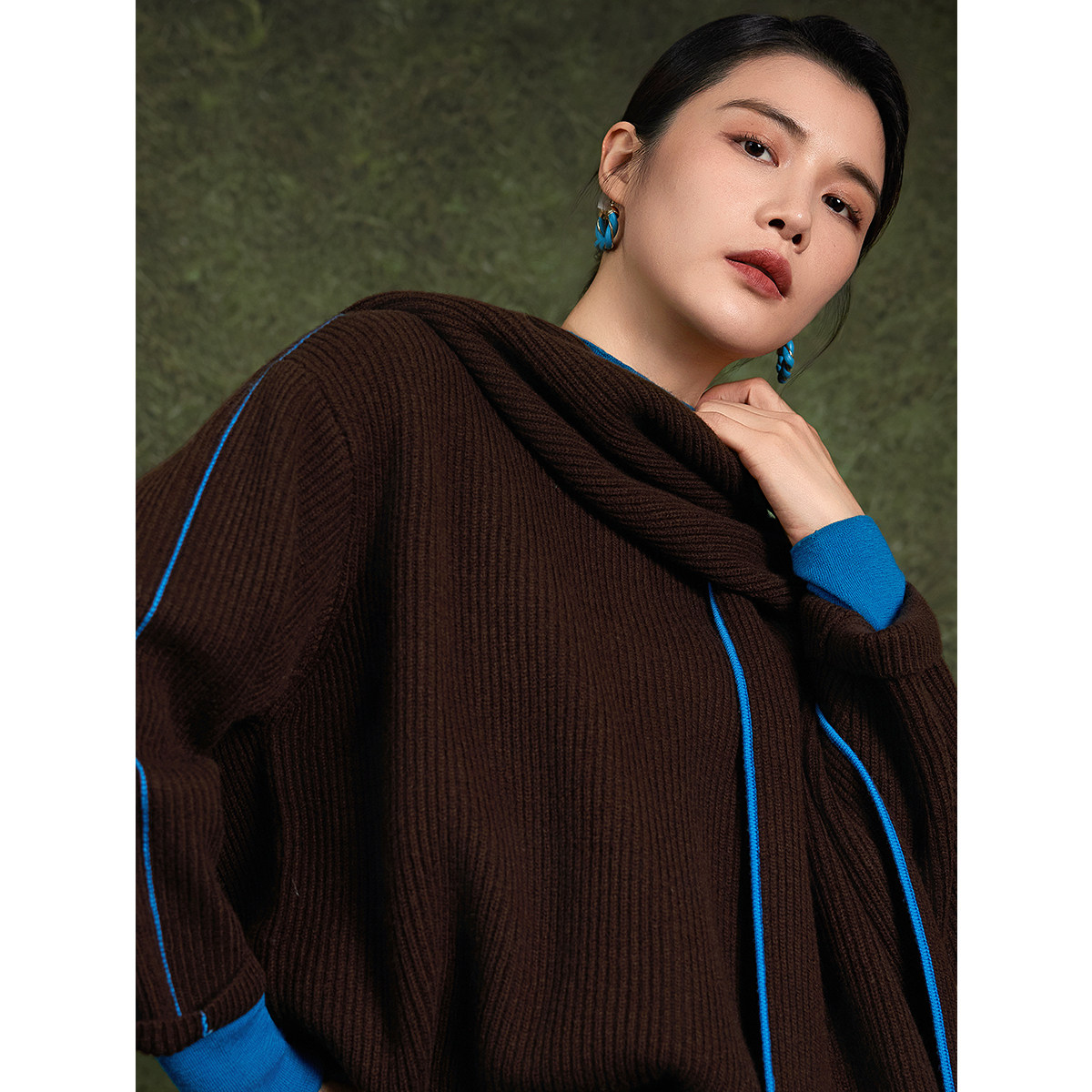 【商场同款】BBLLUUEE/粉蓝衣橱冬装慵懒风撞色围巾领女绵羊毛衫
