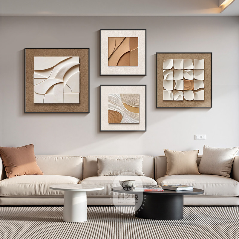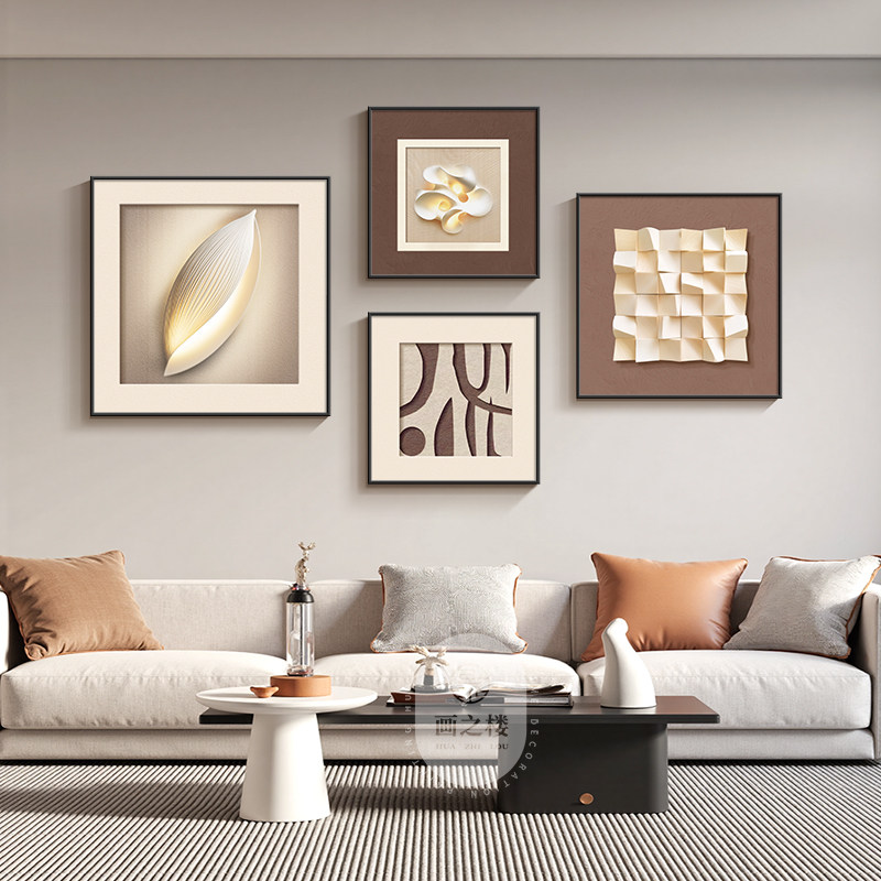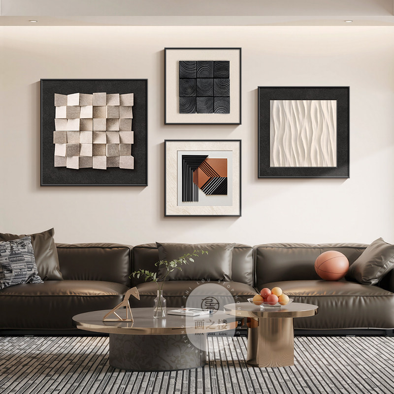 几何抽象客厅装饰画轻奢高级感大白墙沙发背景挂画立体感组合壁画