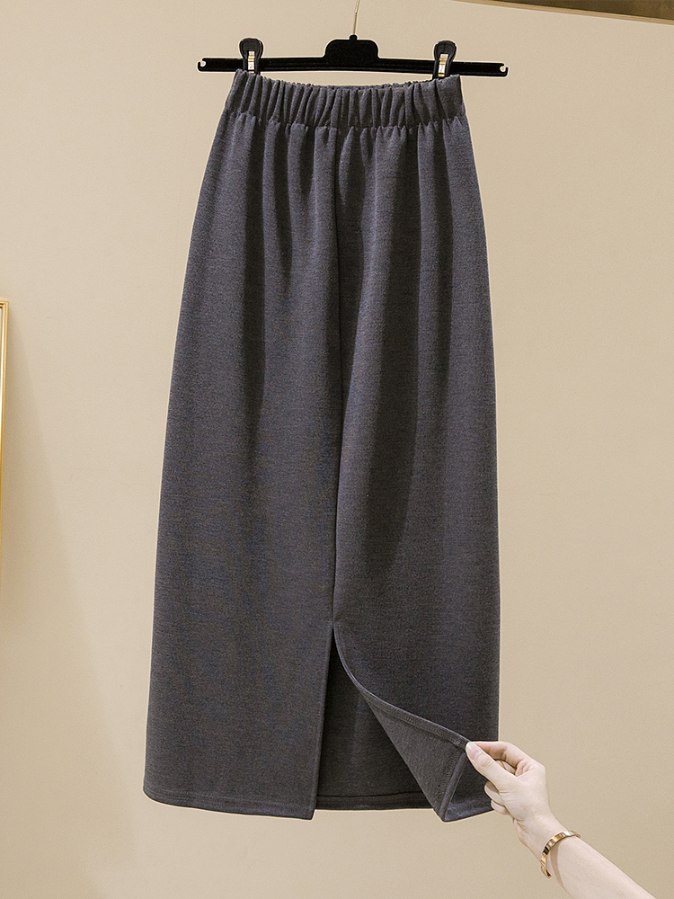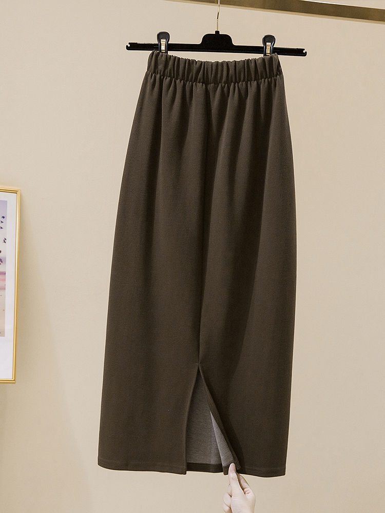 半身裙女秋冬大码开叉松紧腰针织遮肉长裙子黑色垂感直筒中长款裙