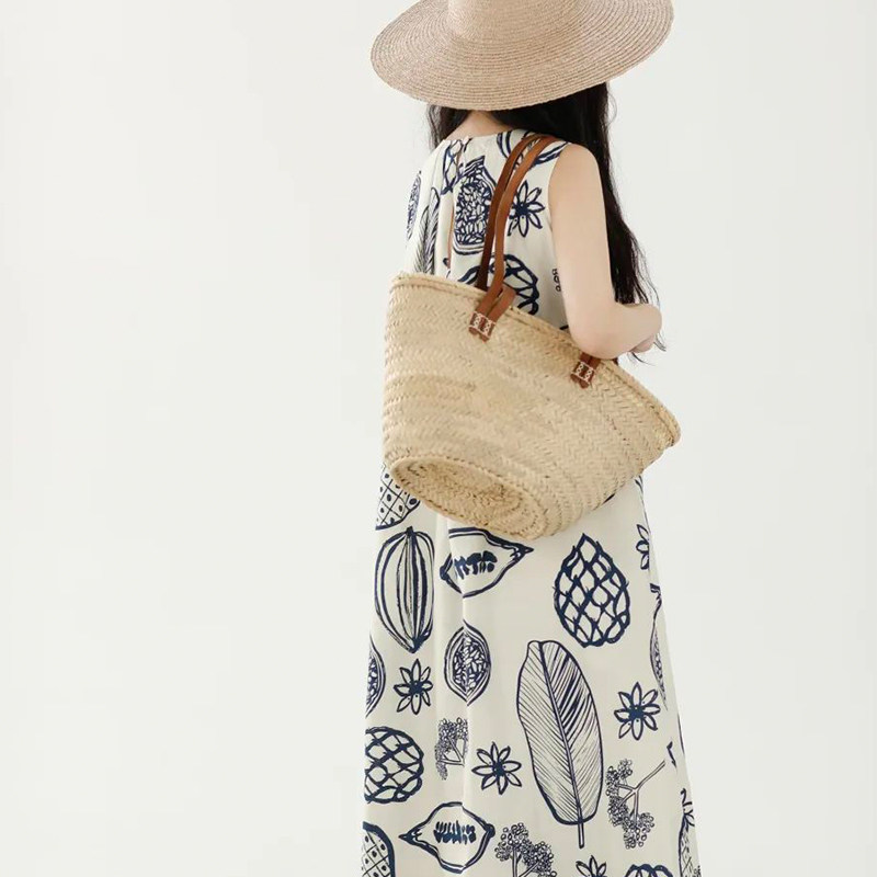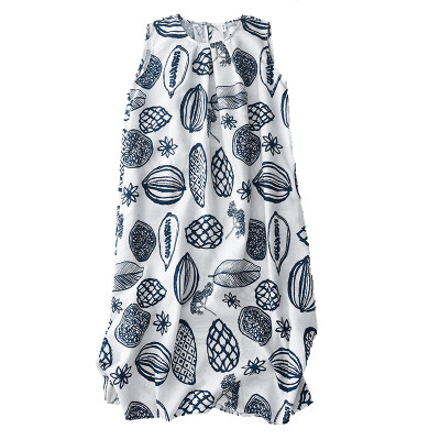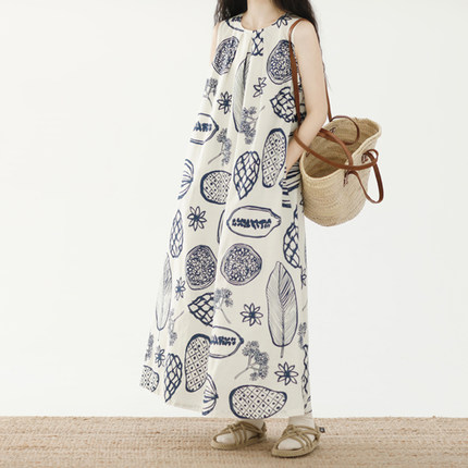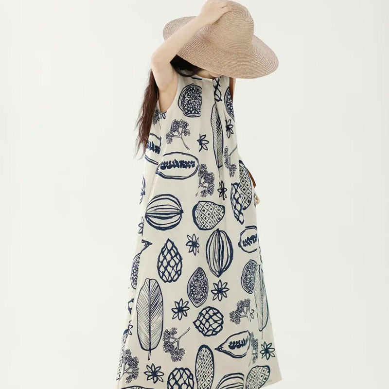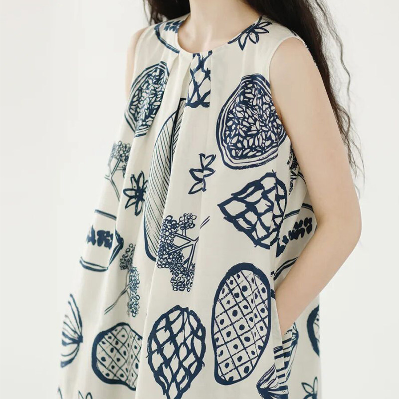 专柜商场撤柜松弛感独特压褶圆领无袖连衣裙热带植物印花成人女裙