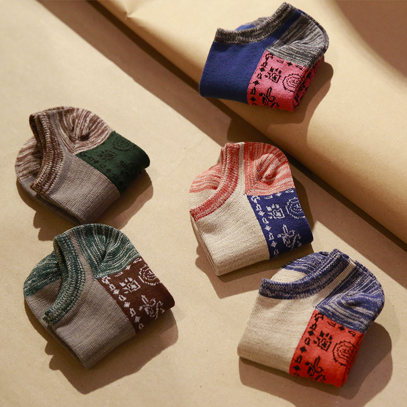 袜子男短袜夏季薄款纯棉低帮船袜春秋防臭吸汗民族风复古ins潮