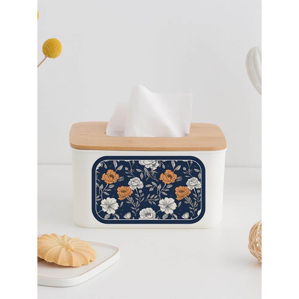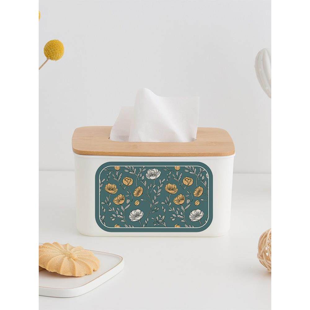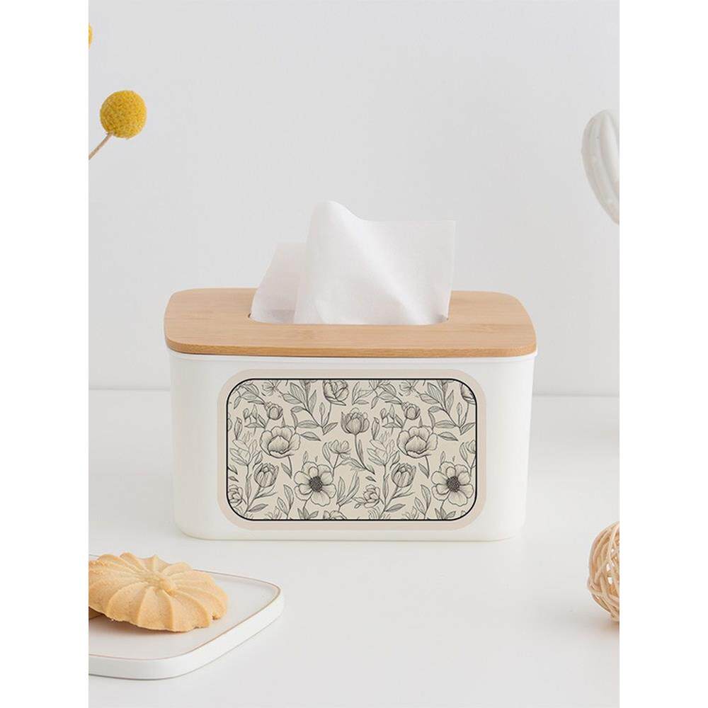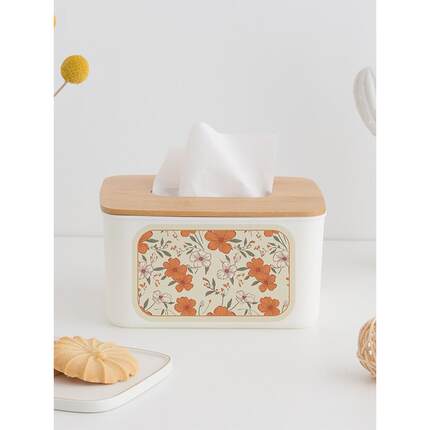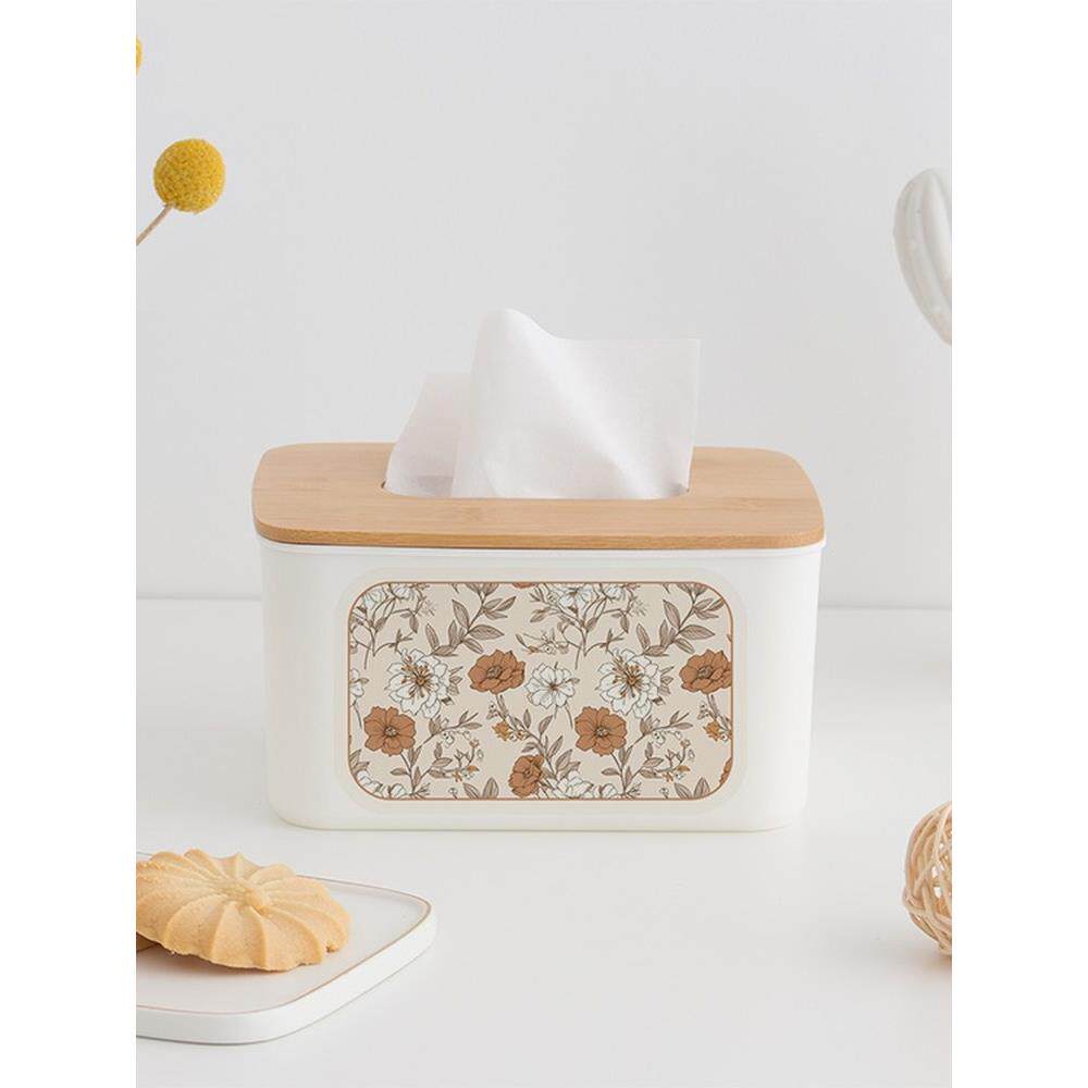 鲜花在竹纸巾盒家庭客厅餐厅咖啡桌桌面餐巾收纳盒