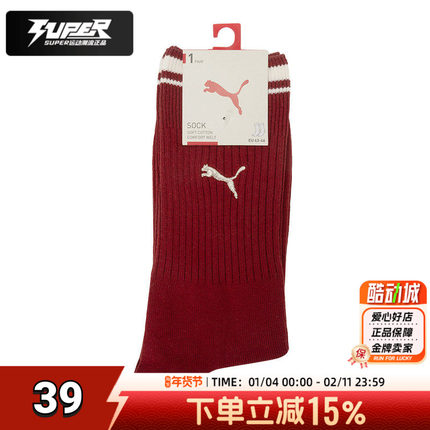 Puma彪马新年款红色袜子官方正品男袜女袜2026新款针织长袜运动袜