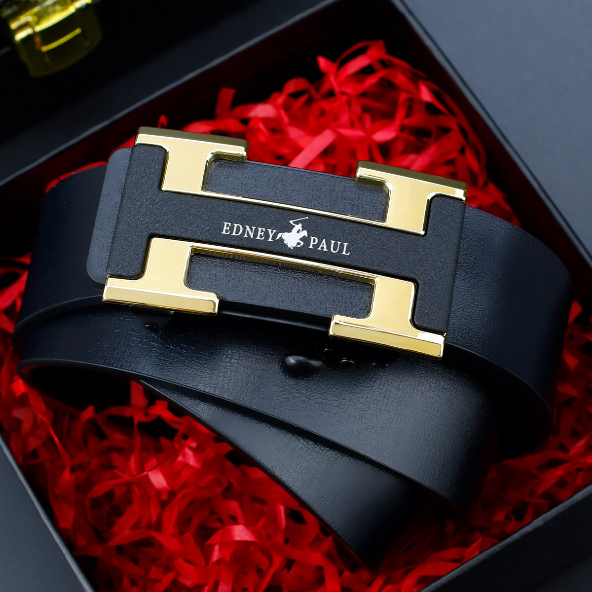 埃德尼保罗皮带男真皮高档自动扣内穿腰带时尚商务百搭H字母裤带
