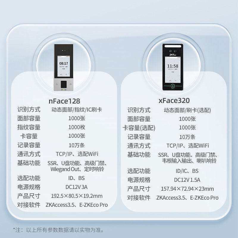 ZKTeco/熵基科技nface128动态人脸识别考勤机面部打卡机考勤门禁一体机xface320上班签到机指纹识别门禁机