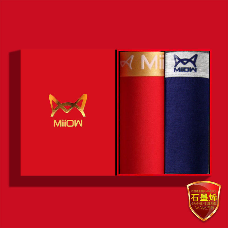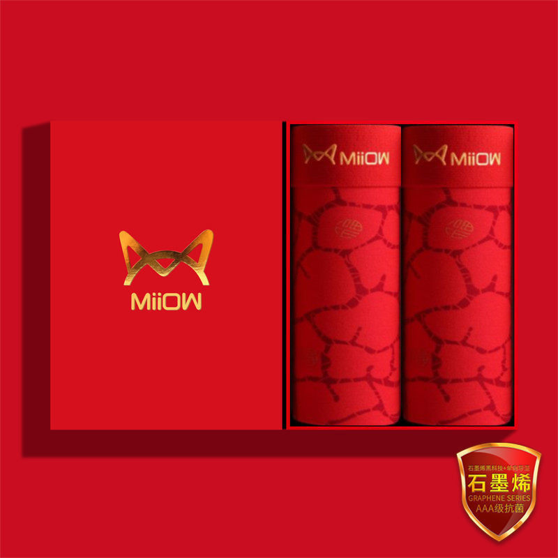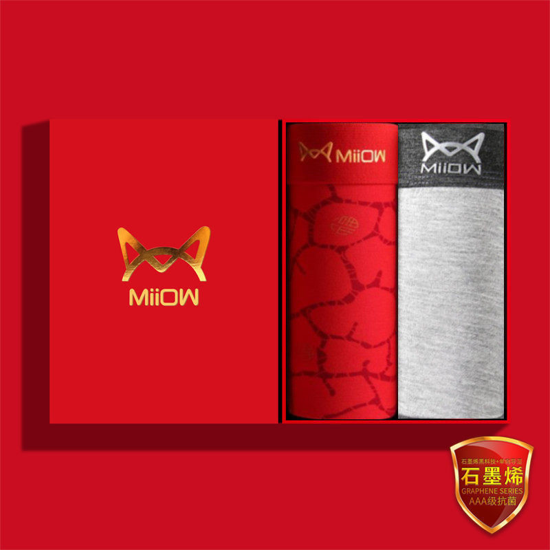 猫人内裤男本命年平角四角裤男士纯棉莫代尔棉新年大红色结婚鸿运