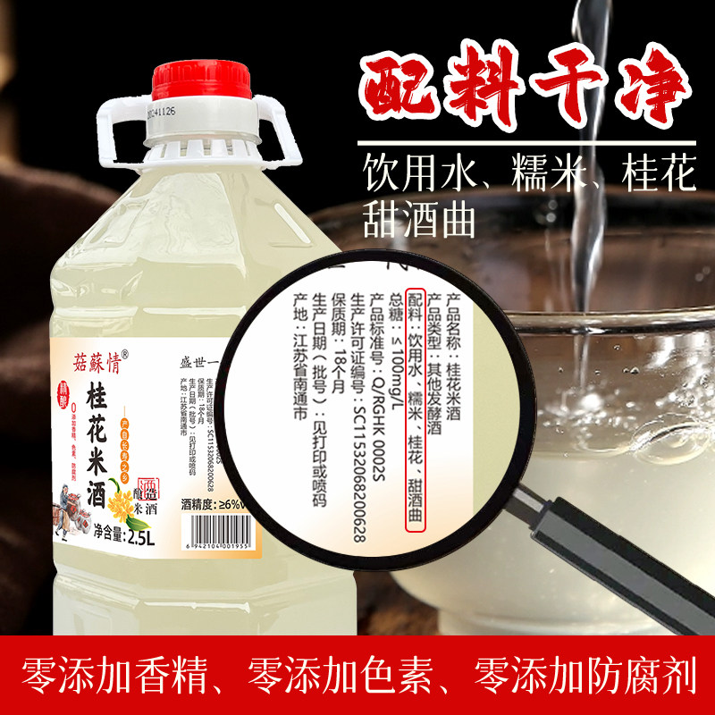 菇苏情精酿桂花米酒2.5/5L桶装5/10斤原浆客家酒醪糟汁泡酒糯米酒