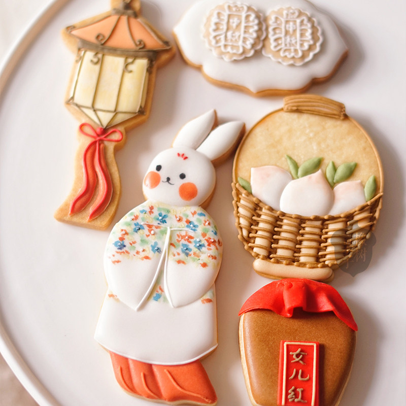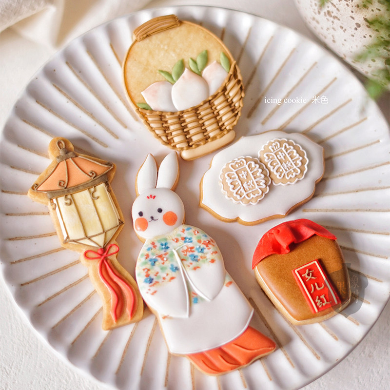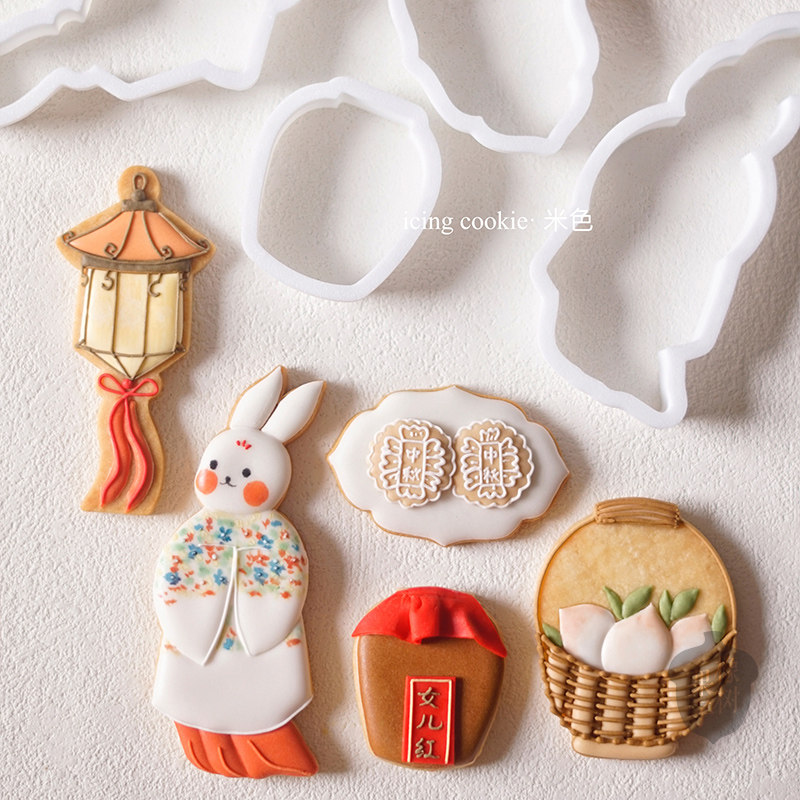 复古国风玉兔嫦娥中秋节糖霜饼干模具元宵花灯女儿红桃子翻糖工具