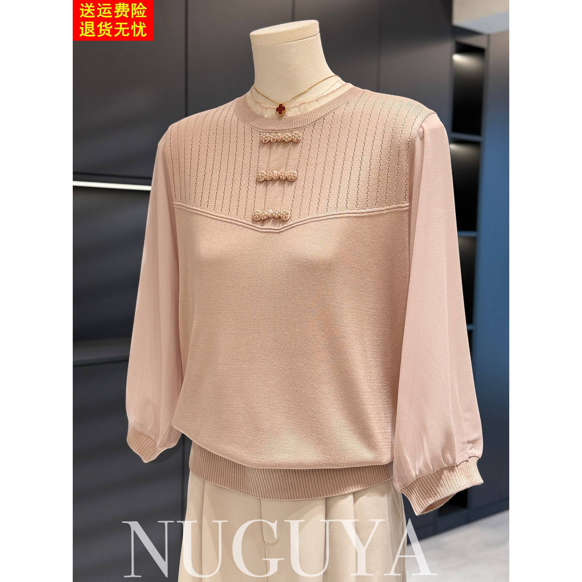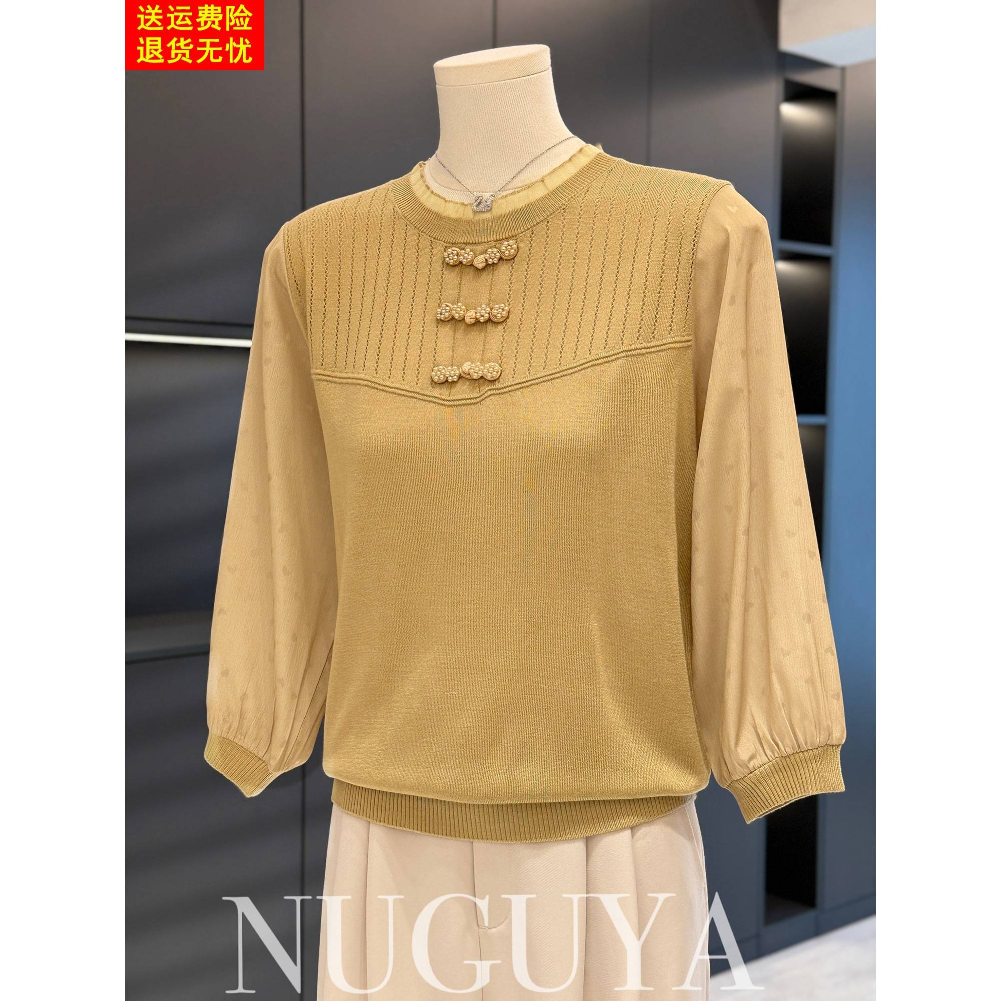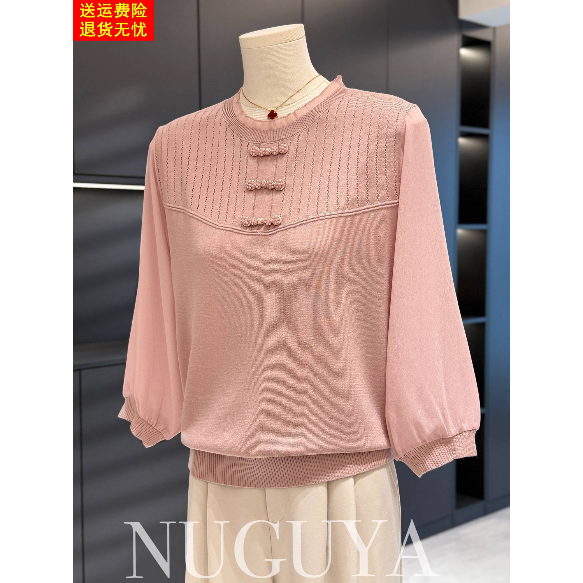 中国风妈妈装雪纺针织衫女七分袖秋装新款上衣气质百搭中老年小衫
