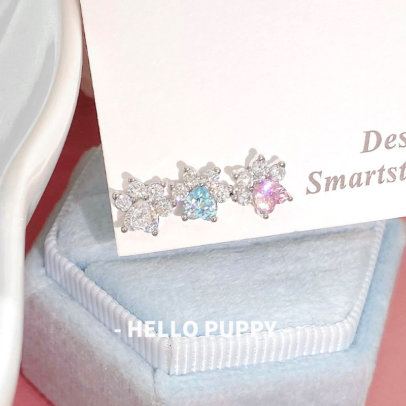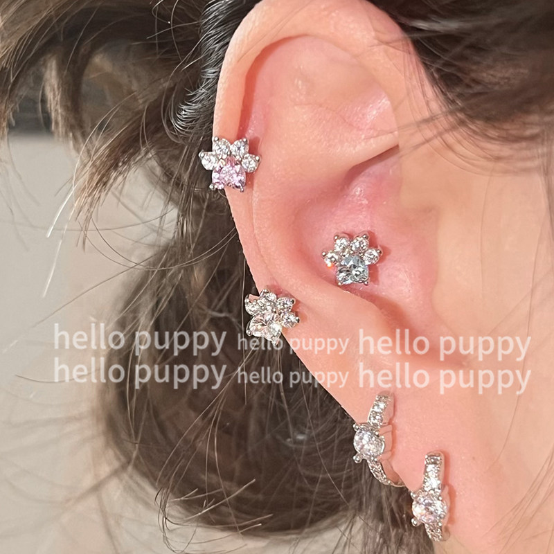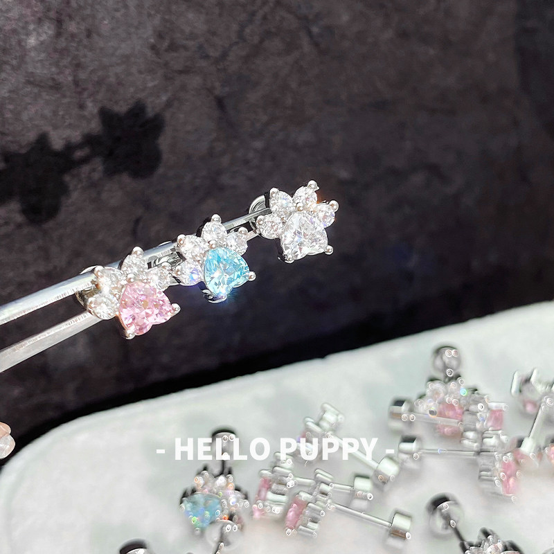 hellopuppy爆闪猫爪耳骨钉耳钉耳饰可爱少女心医用钛钢养耳洞平底