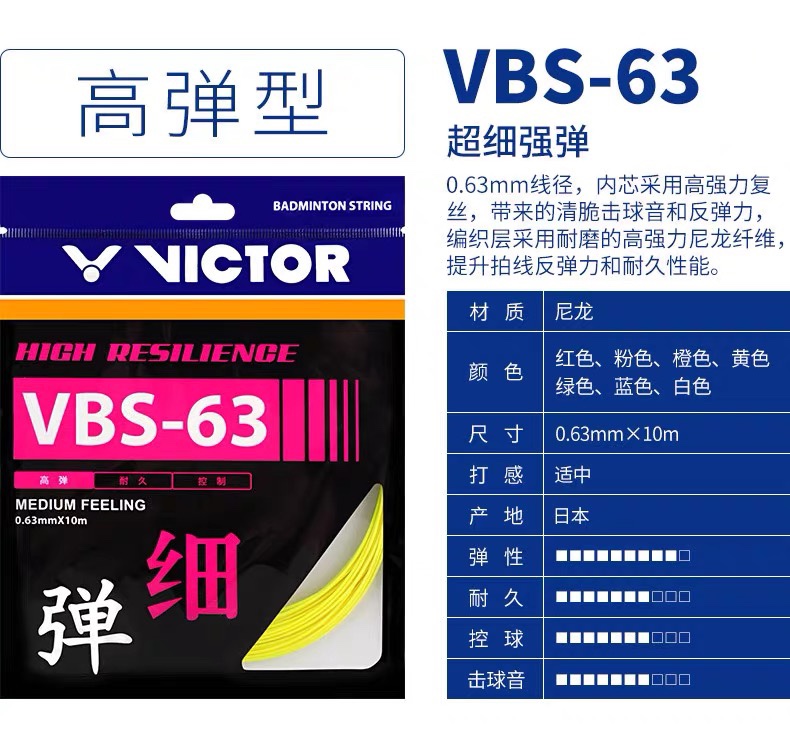 VICTOR威克多胜利VBS63/66N高弹力进攻68P70耐久vs100羽毛球拍线