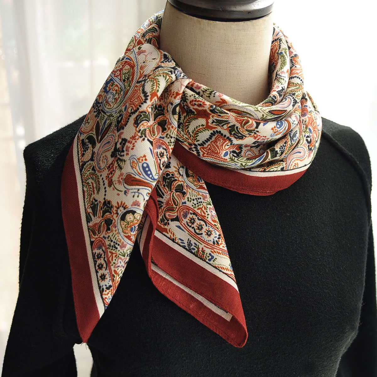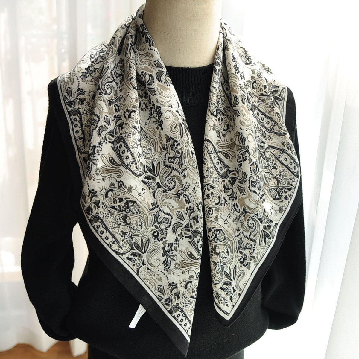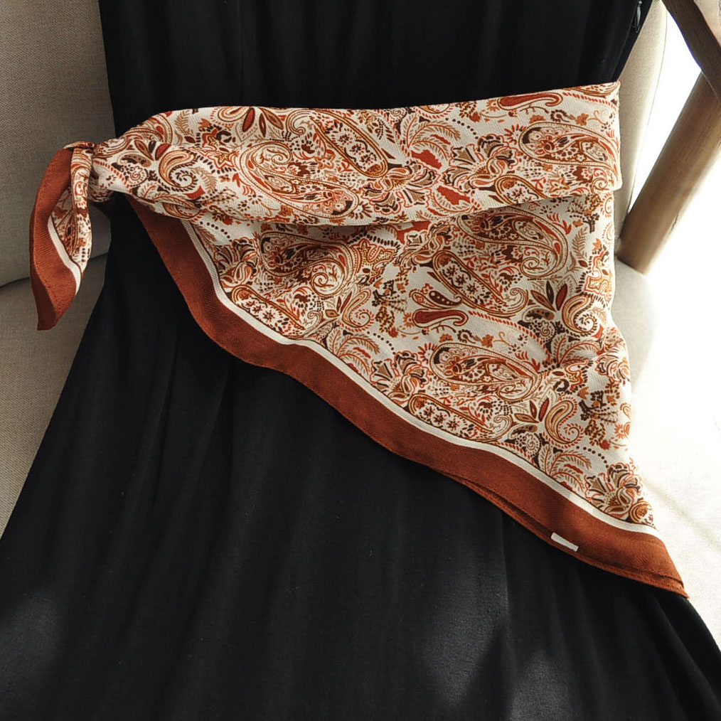 2025新款秋冬复古印花丝巾女百搭叠搭屁帘围巾女小方巾装饰领巾