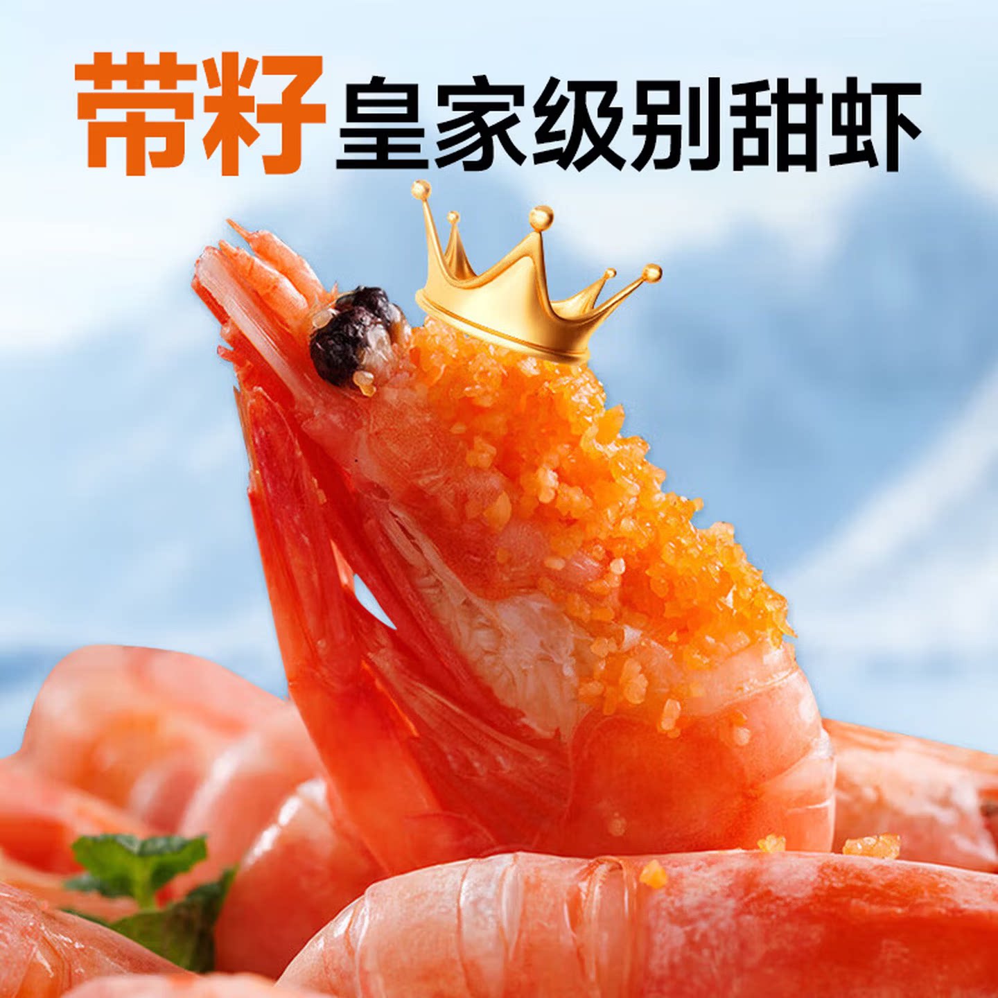 北极甜虾北极熊北极虾熟冻头膏头籽特大冰虾新鲜冷冻海鲜水产熟冻