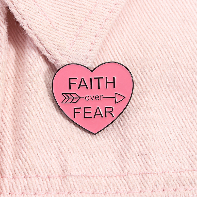 信仰战胜恐惧爱心胸针金属徽章正能量积极别针衣服包笔袋配饰勋章