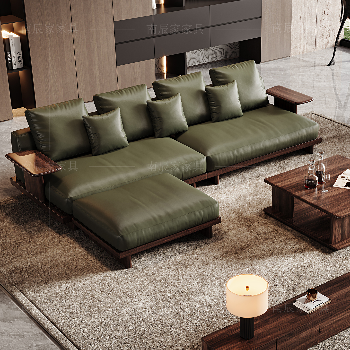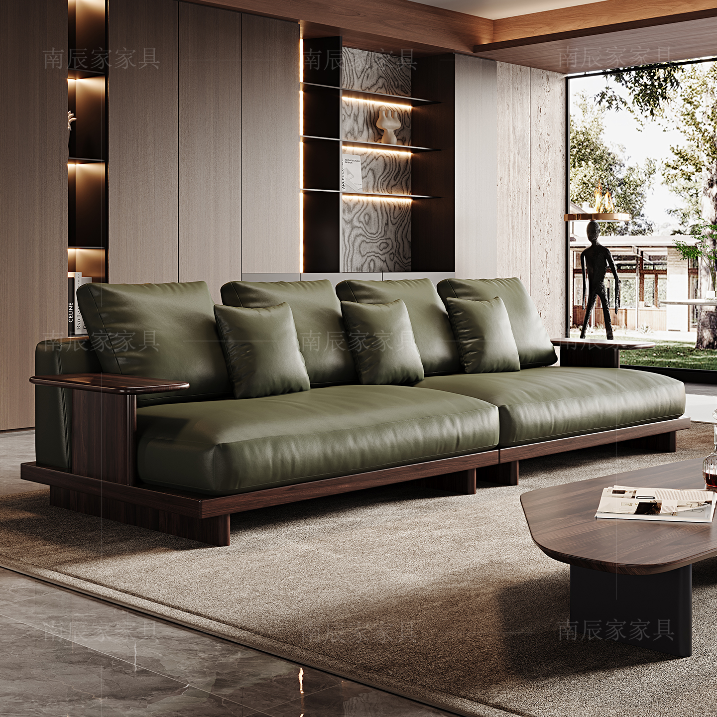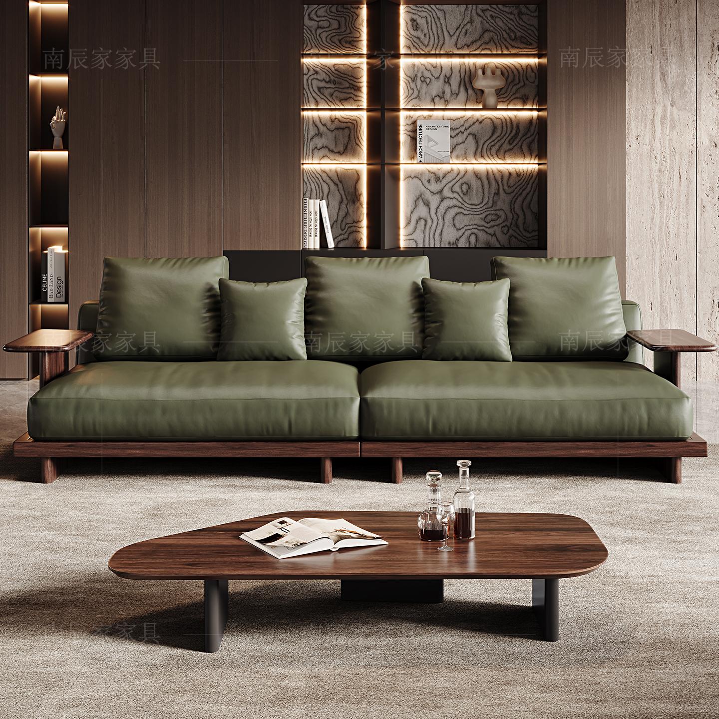黑胡桃木新中式实木沙发三人位真皮软装小户型客厅宋氏美学沙发