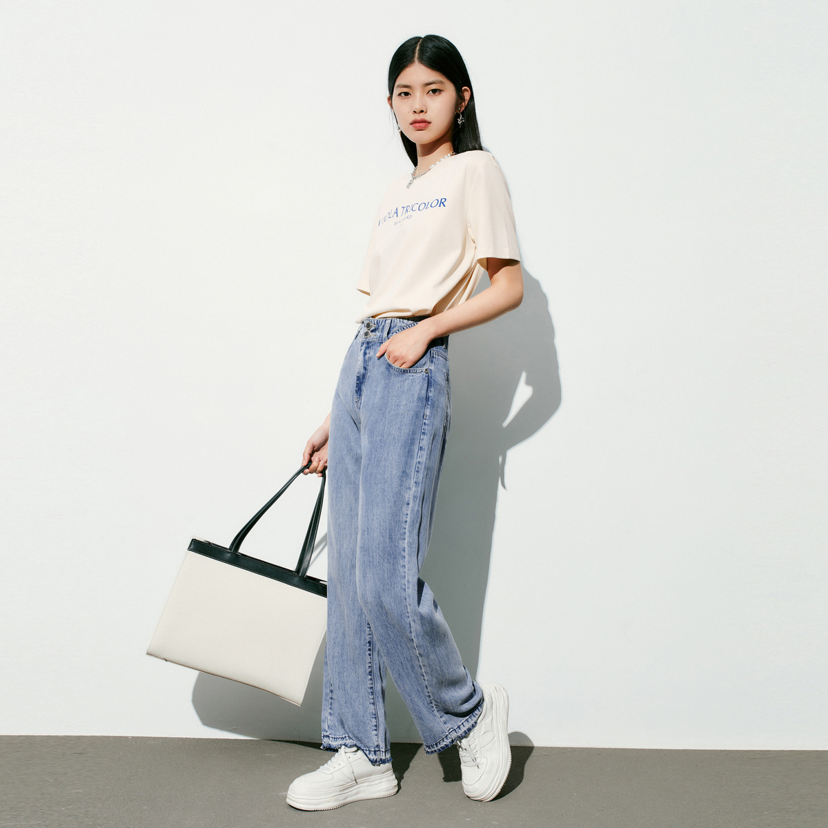 太平鸟女装年天丝直筒牛仔裤A1HAD2139