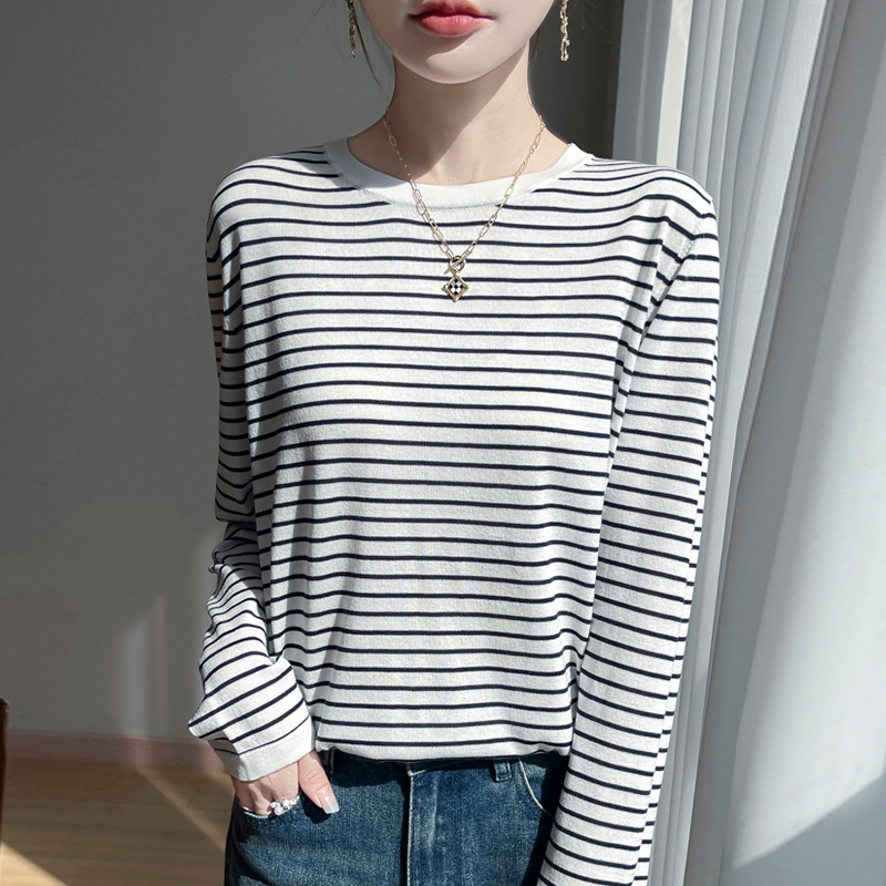 早秋宽松条纹针织打底衫女2025新款春秋洋气上衣大码女装秋冬毛衣