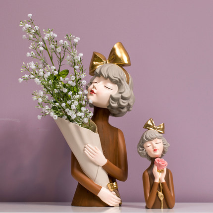 现代创意蝴蝶结女孩花瓶摆件轻奢风客厅角几边几玄关干花插花摆设