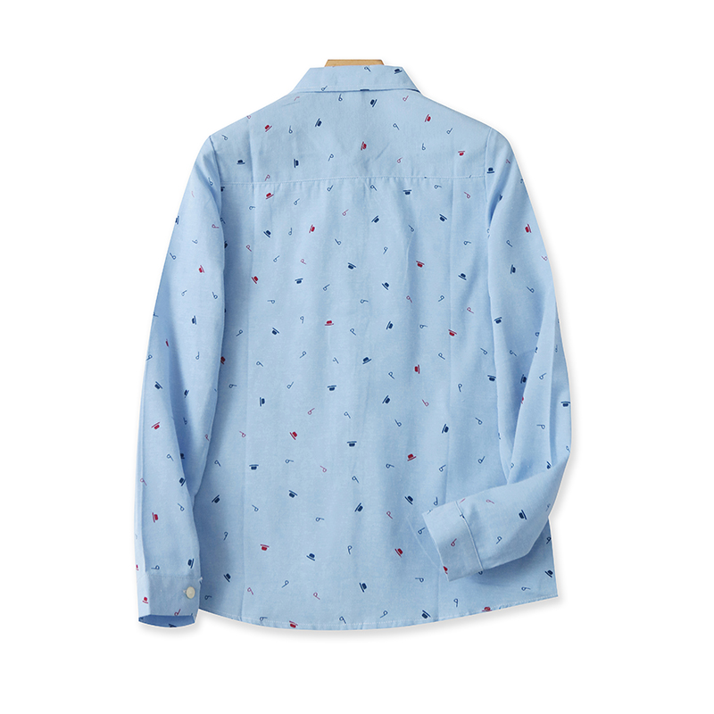 爱丽爱熙百搭款纽扣长袖印花衬衣