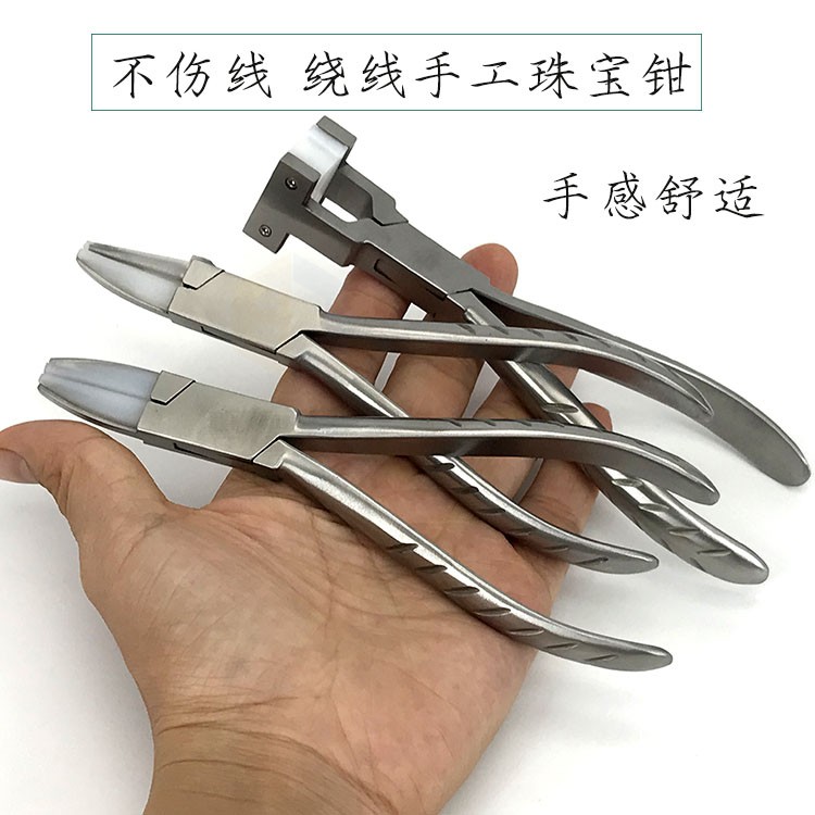 不锈钢尼龙平口钳子平嘴塑料钳金银铜绕线手工弧形钳首饰打金工具
