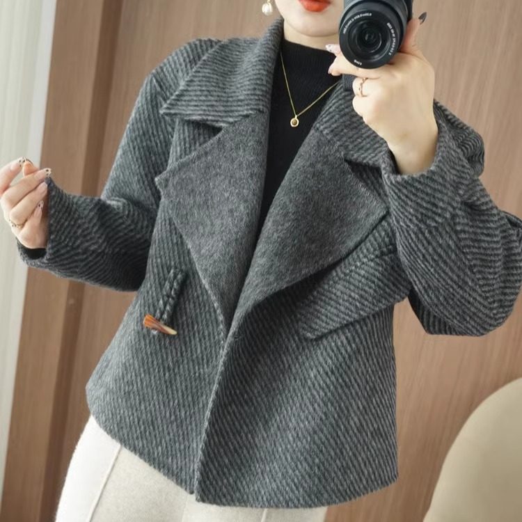 高端100%双面羊绒大衣女外套风衣纯羊毛扣子高档毛呢短款小个子