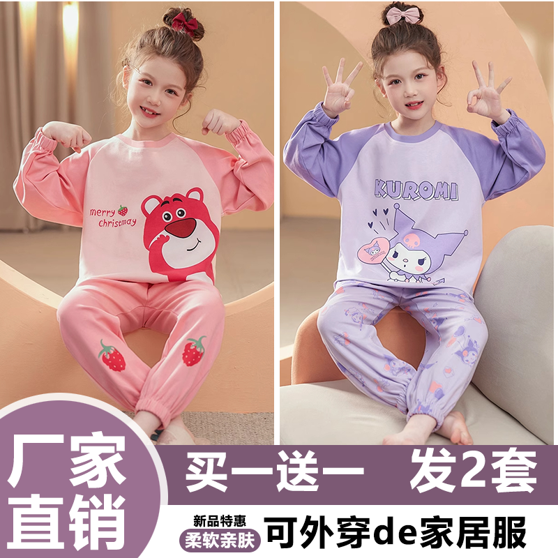 【买一送一】卡通春秋季儿童睡衣长袖中大女童韩版网红可爱家居服